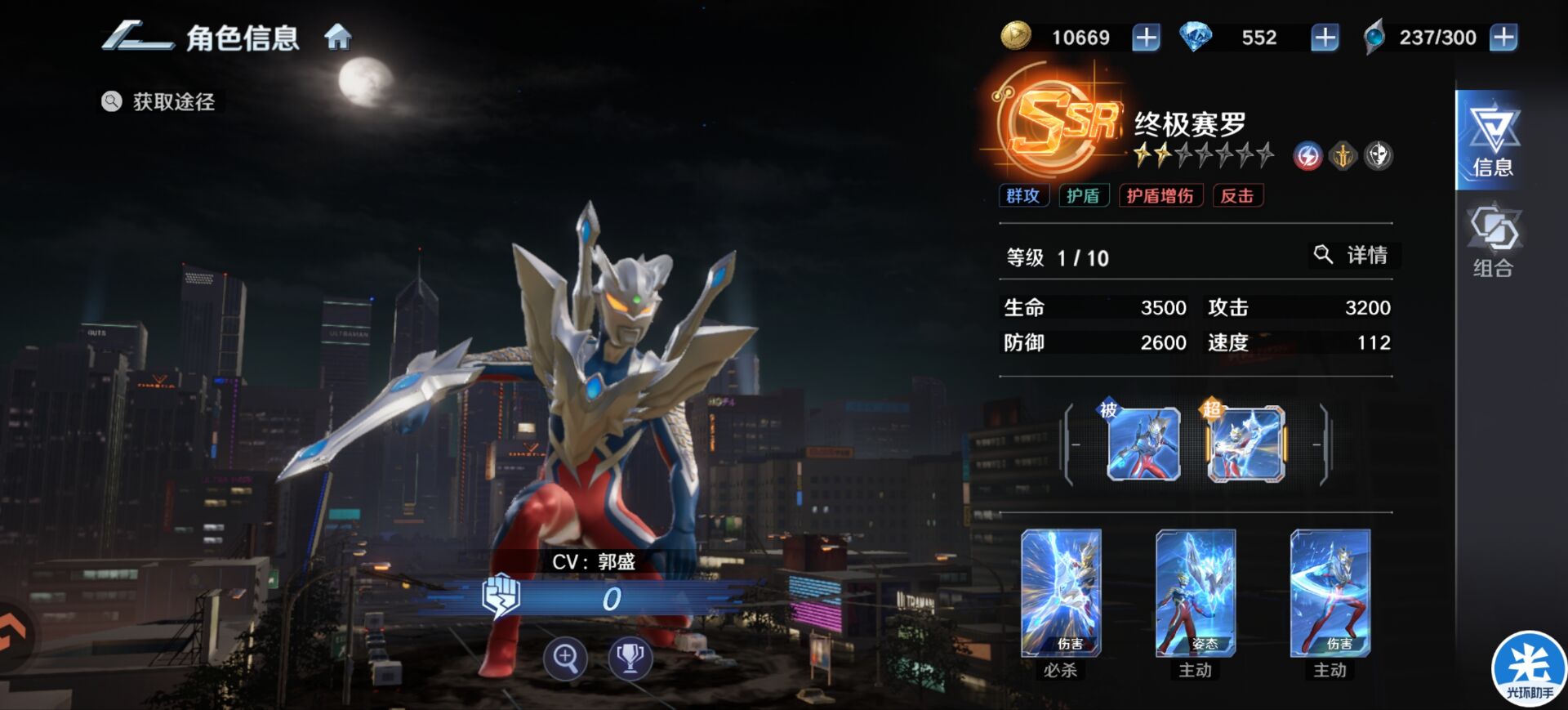 解析:欧布是狮子认为融入赛罗警备队是好的选择,能够配合【终极赛罗】激活组合技提高生命和防御,也可以配合终极赛罗打反击效果。