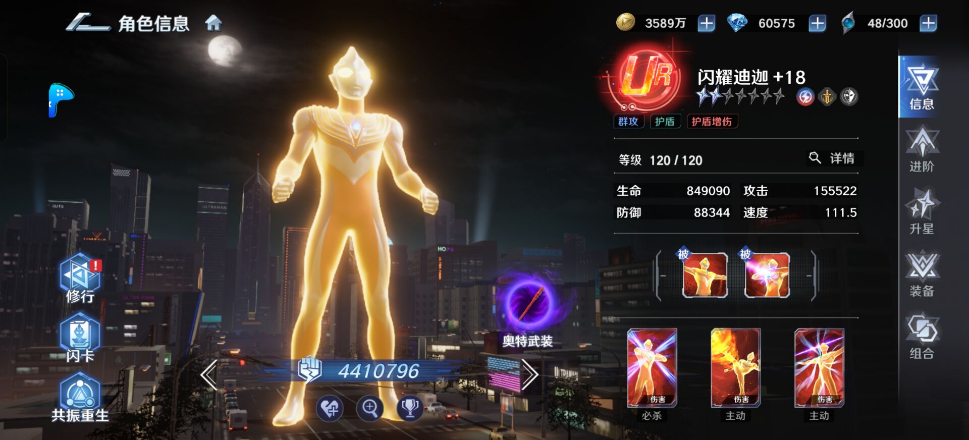 ps:没有高练度【闪耀迪迦】的朋友也可以换成:贝利亚、终极赛罗都可以。