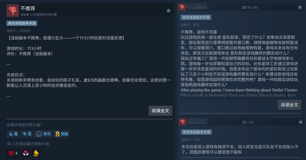 但在游戏名利双收的同时,我们从评论区也能看到,有很大一部分评论也指出了游戏当前的不足。