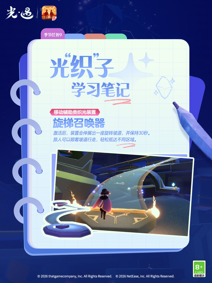 光“织”子学习笔记丨织光季任务九已开启是泽哦发布于 03-13关注旋梯在光芒中螺旋伸展构筑起通往远方的路径引领旅人抵达难以企及的地点🌀织光季任务九已经开启点击图片学习装置使用方式沿着旋转坡道探索更多角落吧!