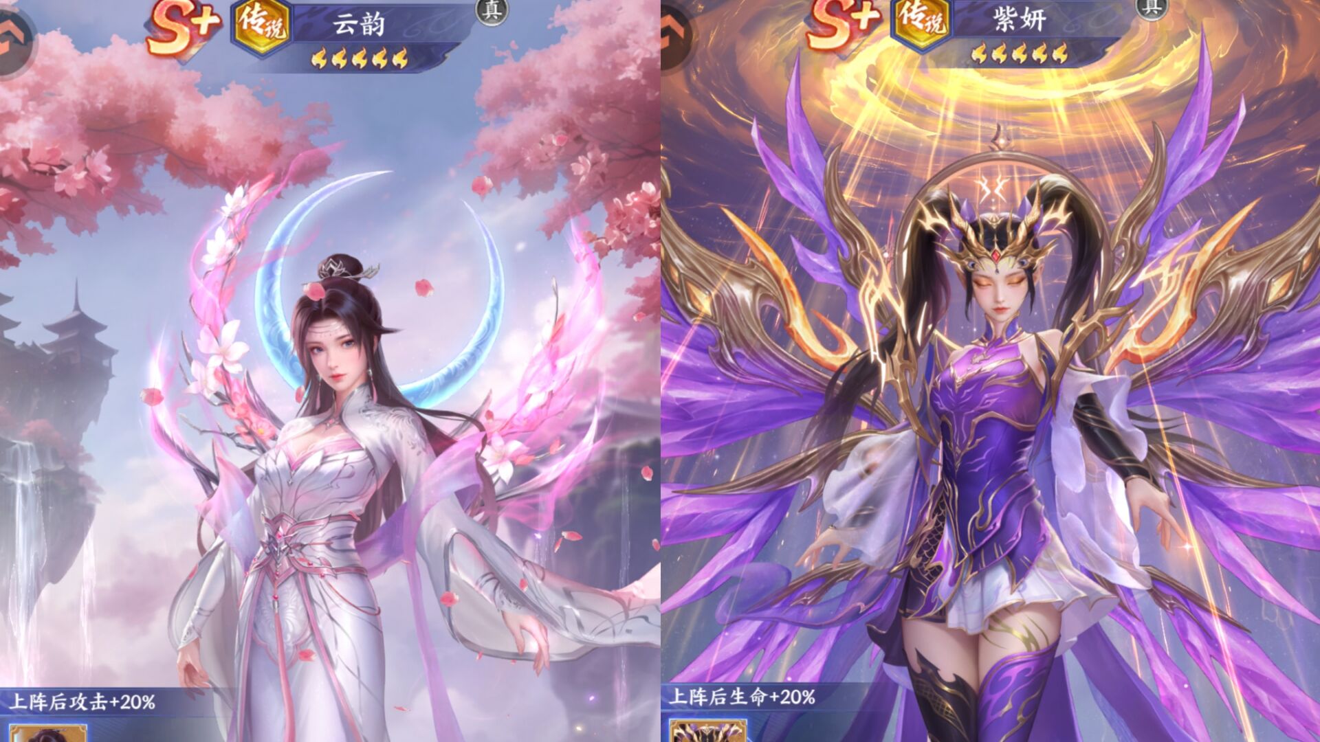 ①传说云韵:版本最强奶妈,可以给队友提供攻击和暴击等增益,还有高贵的复活机制,并且本身也肉而且白板也能用,当然有条件的玩家可以升血脉。