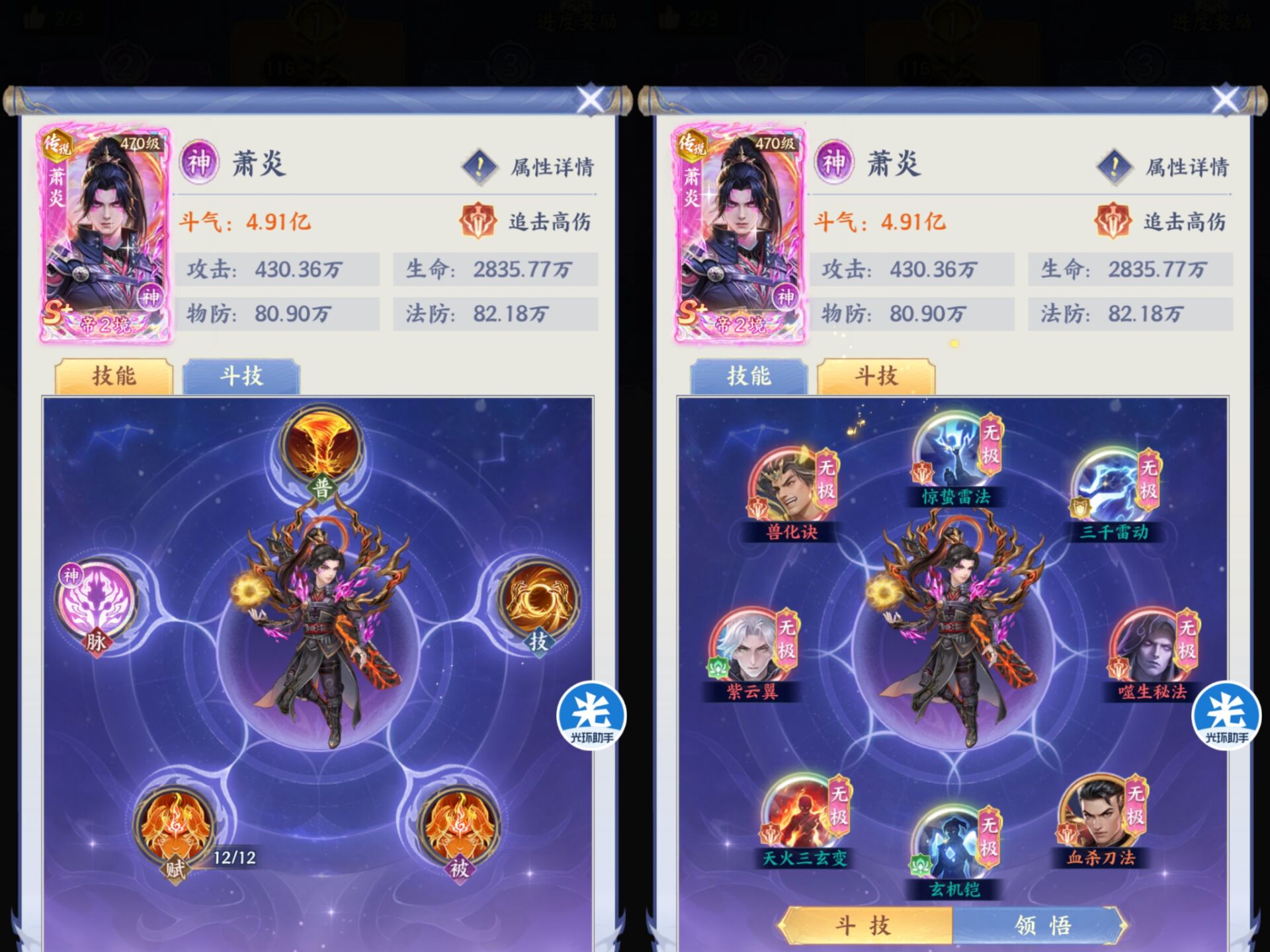 四:【斗技】平民最重点培养推荐。①红色斗技一定要优先拿【嗜生秘法】爬塔神技可以无限减防,配合萧炎推爬事半功倍,不然萧炎都打不出伤害。