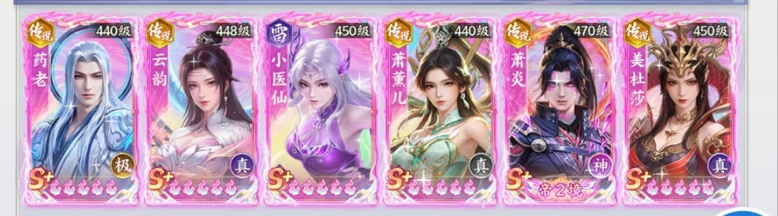 因为第8天出了真输出【传说萧炎】以后没有什么阵容可言的,就是以【传说萧炎】去配队即可