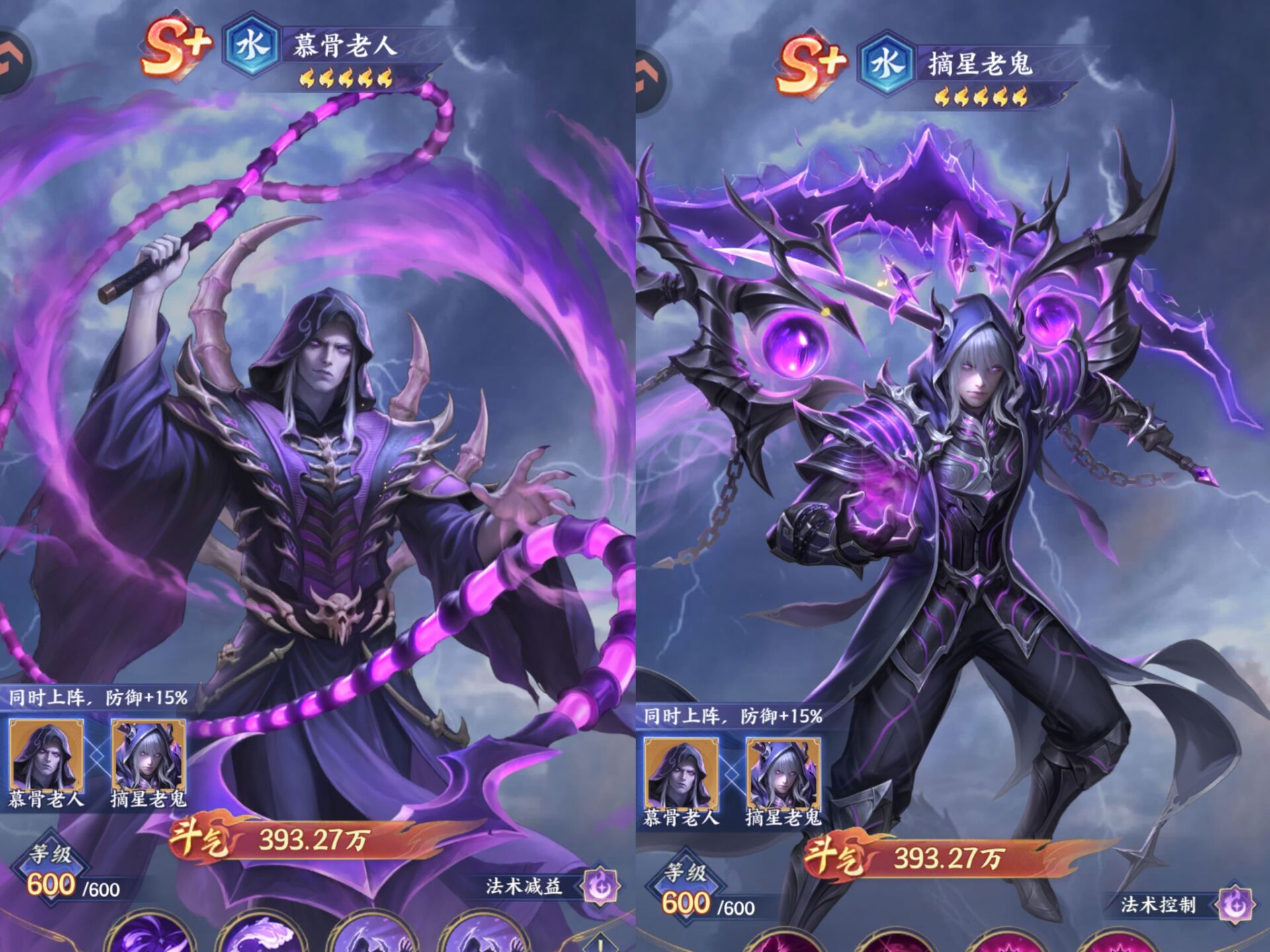 比如【暮骨老人】幻彩一星后解锁了控制效果可以放在前排1号位先手打控制,运气好控个3-5个敌人,所以在pve和pvp都好用。