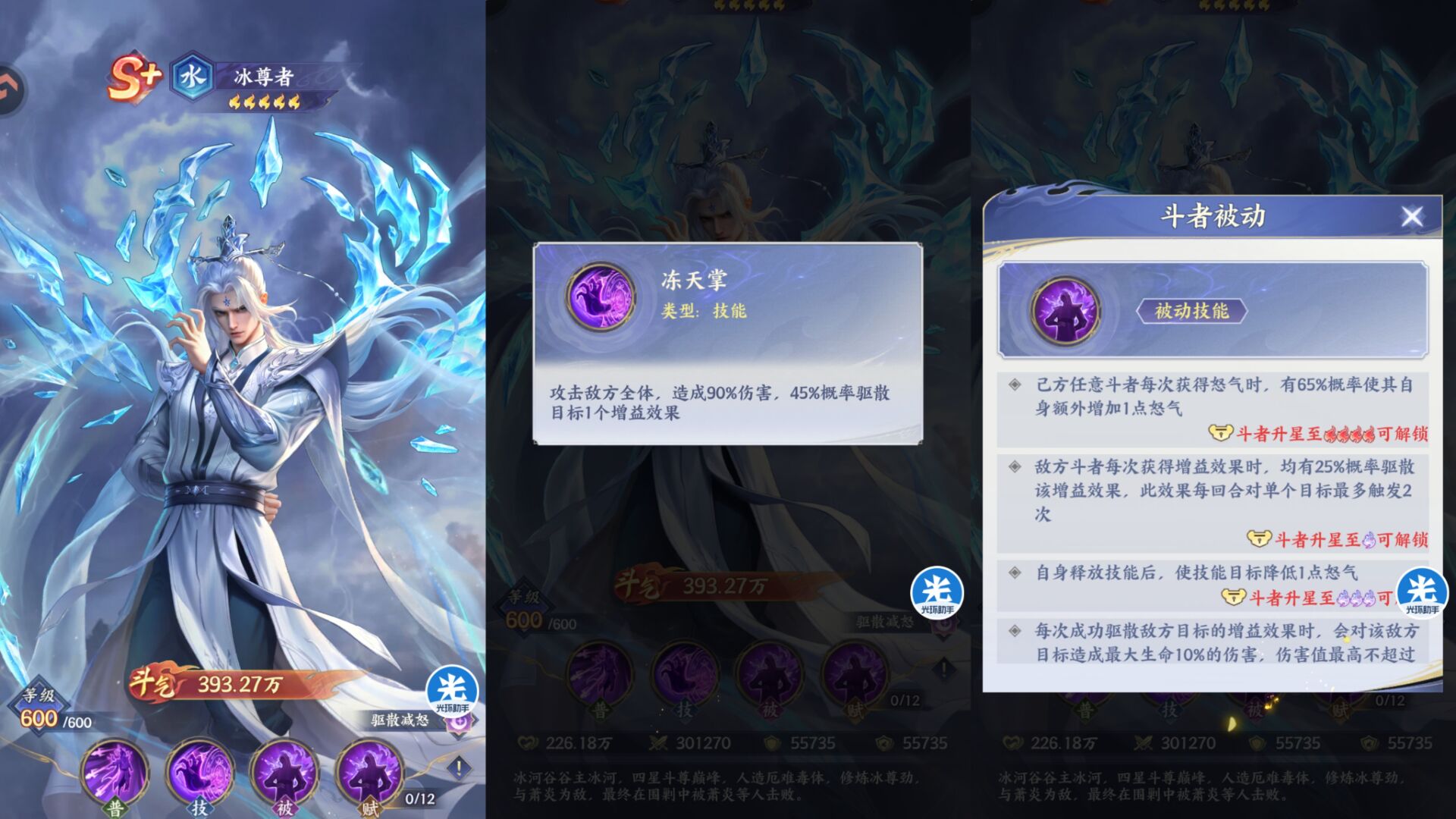 前期大家没有【异火回怒】的时候,冰尊者斗技带:浪重叠、狂狮、这些可以减怒的斗技放在1号位可以先手减怒敌人,让敌人直接哑火失去战斗能力,让胜率可以大幅度偏向我方。