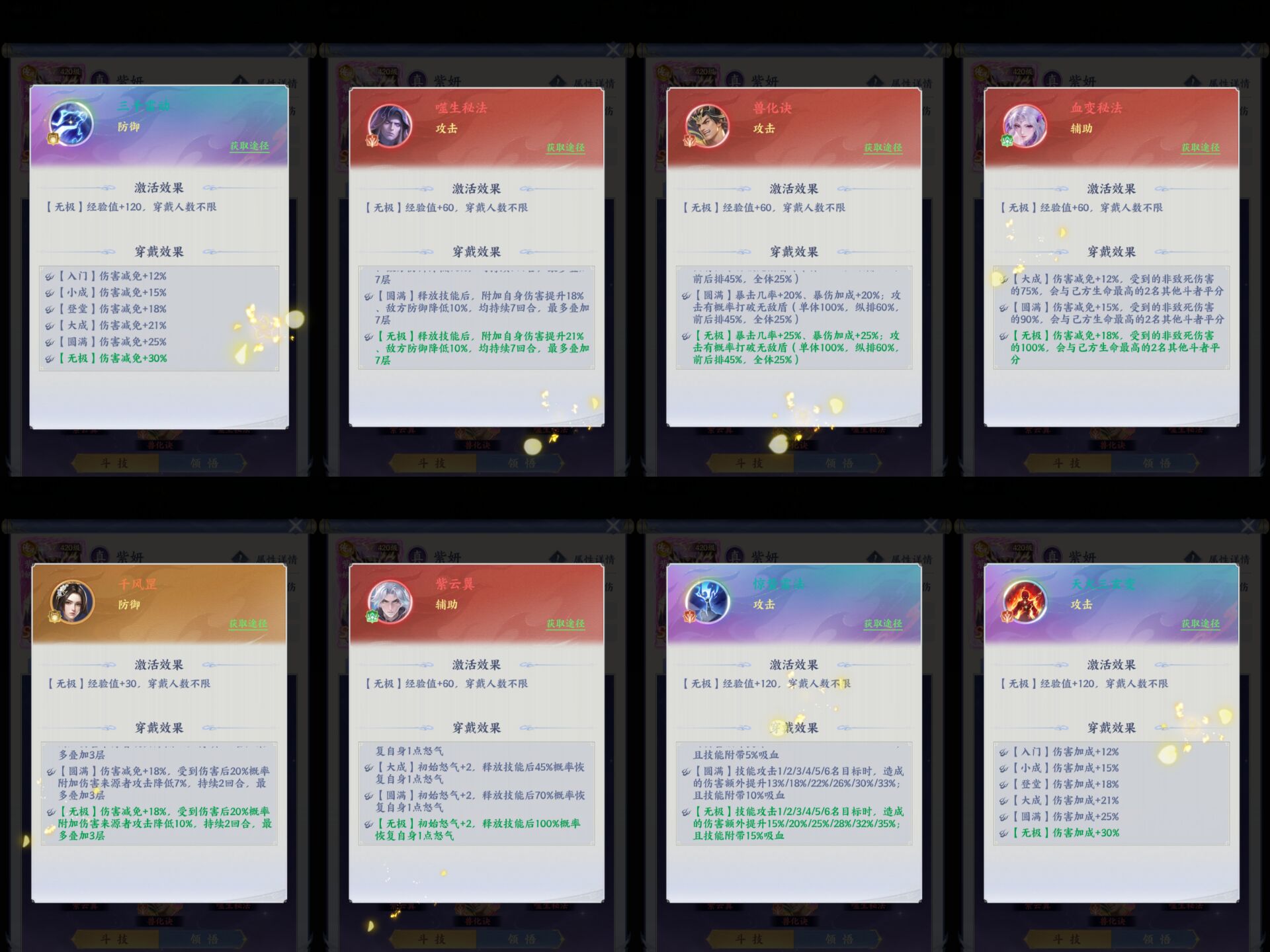 ⑦魂手印:大幅度提升伤害减免,配合千风罡、三千雷动、古圣宝签等免伤加成身板肉到极致从而充分体现出肉盾的能力。