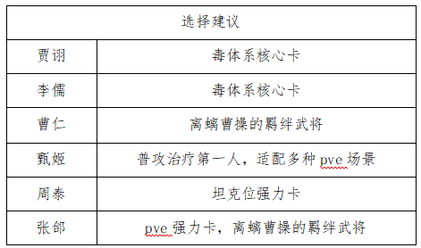 毒谋:李儒,与贾诩、华佗同时上阵,激活毒医之辨缘分,大幅提高团队挂毒效率,防守反击的同时可以让团队残血时,姜维爆发出惊人伤害逆转战局。