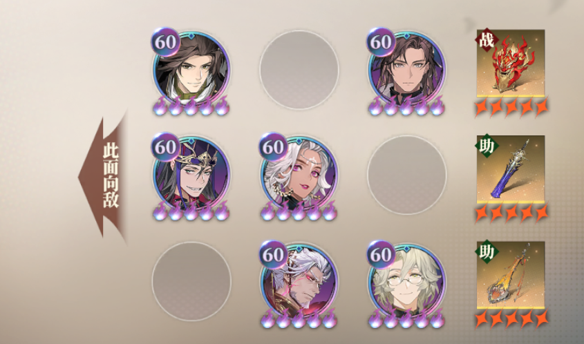 5星鸣鸿噬心+5星玉龙翔天+3星悬壶济世+3星木牛流马+3星奔岚踏海+3星烈旗耀威→