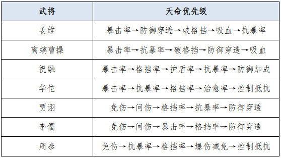 整体优先级:鸣鸿噬心>玉龙翔天>悬壶济世>木牛流马>奔岚踏海>烈旗耀威(可根据下表按具体武将抽取)