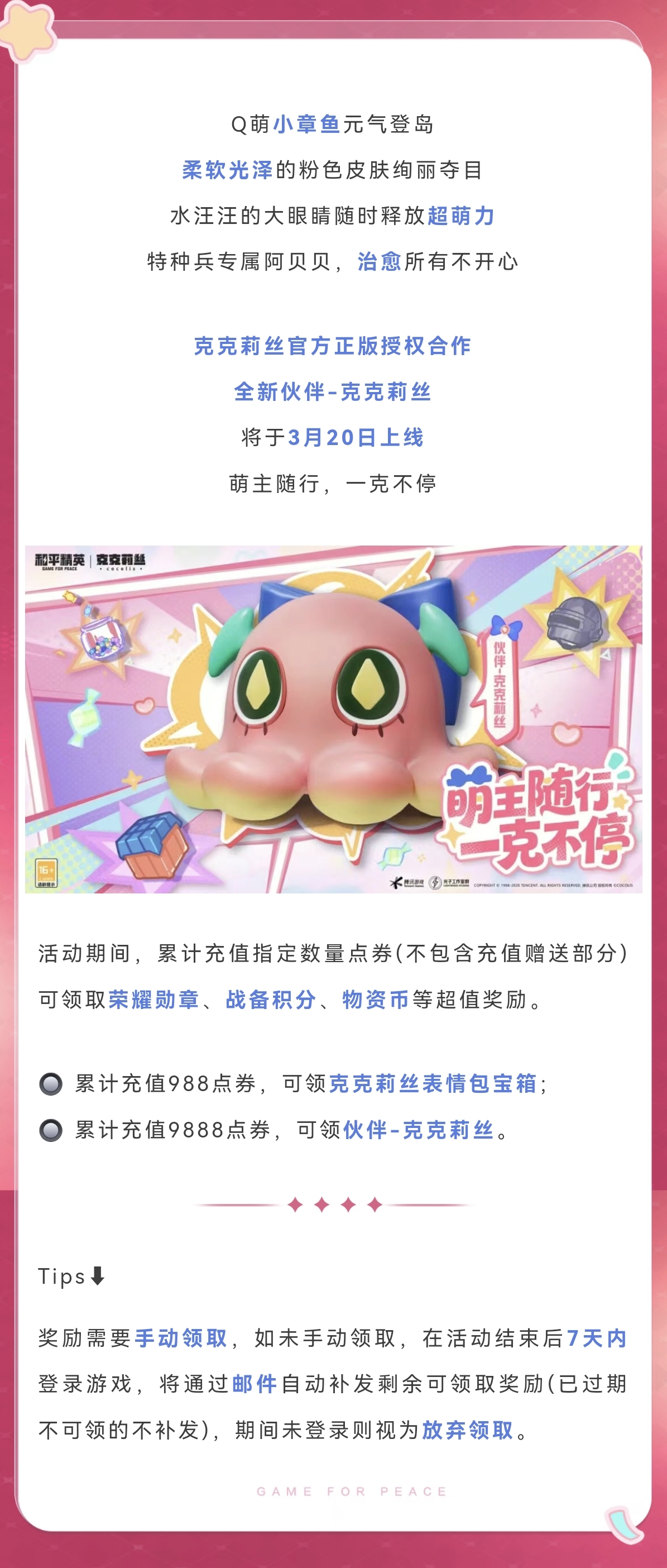 新皮肤爆料丨萌主随行,一克不停!全新伙伴-克克莉丝将于3月20日正式上线~