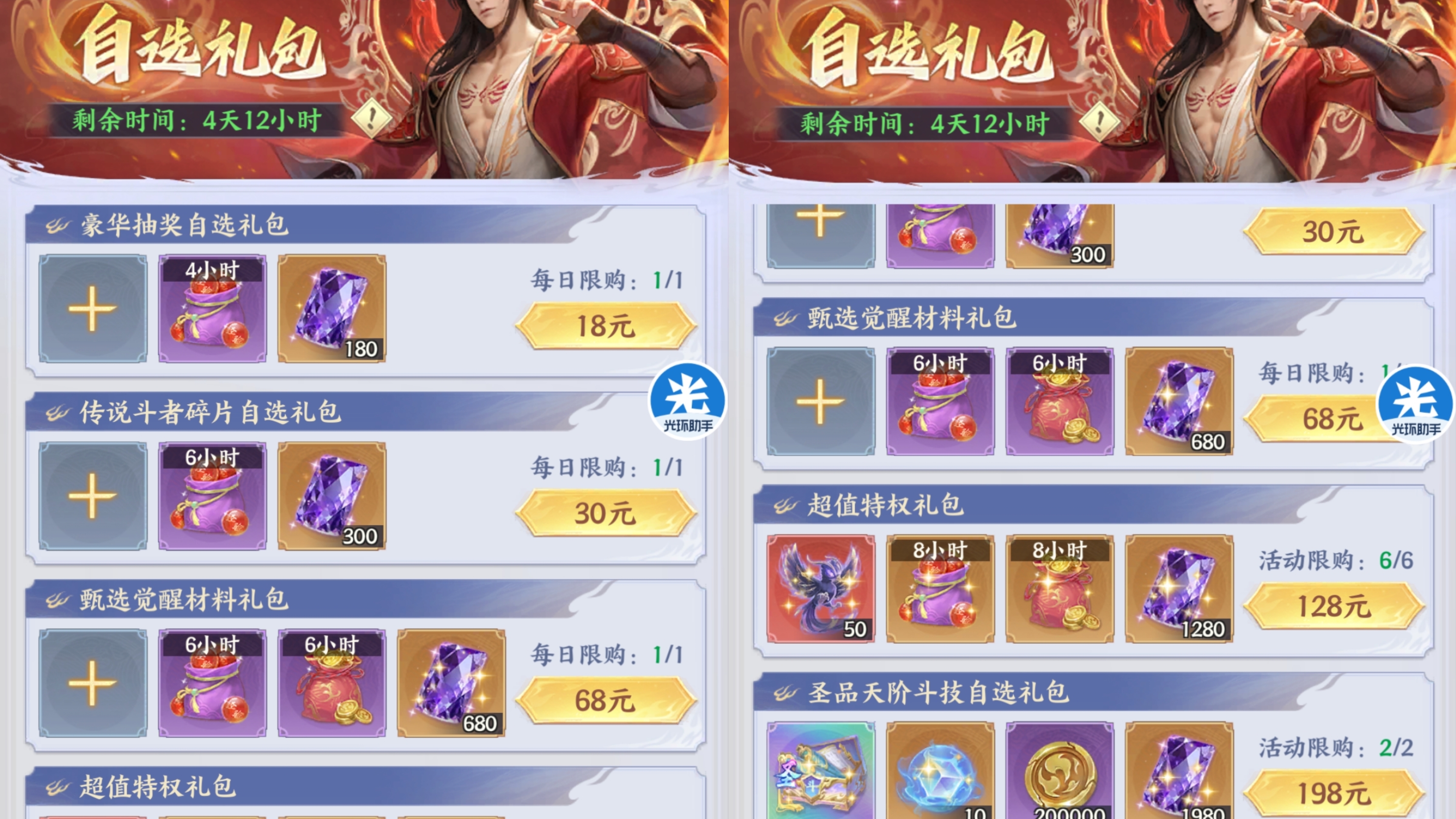 ⑤648元礼包优先选择:丹兽自选>天幕圣灵>自选异火>圣斗技。