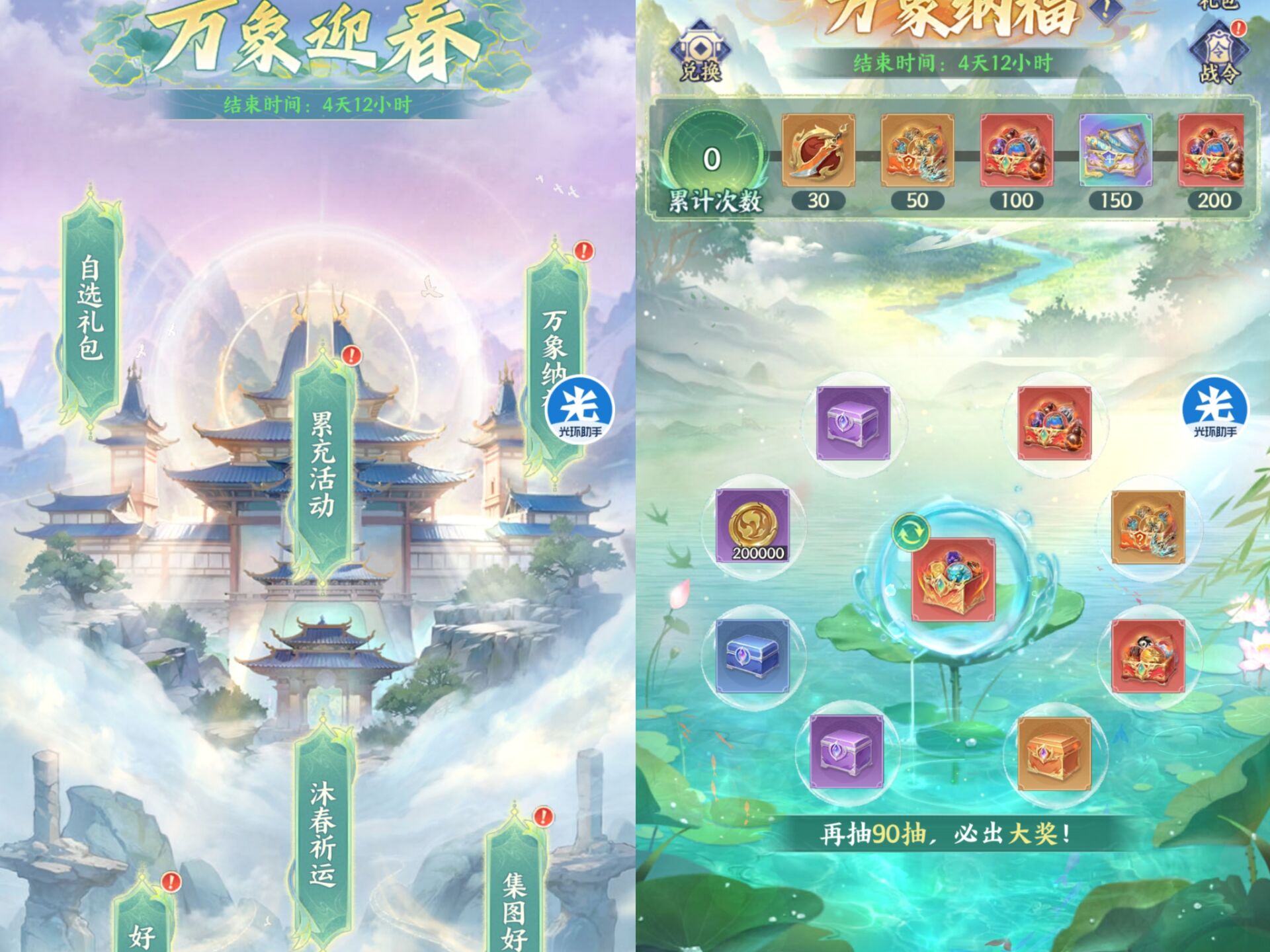5:【沐春祈运】玩法。也是对氪金玩家比较友好的活动,每天氪6元就可以额外获得1次抽奖机会。