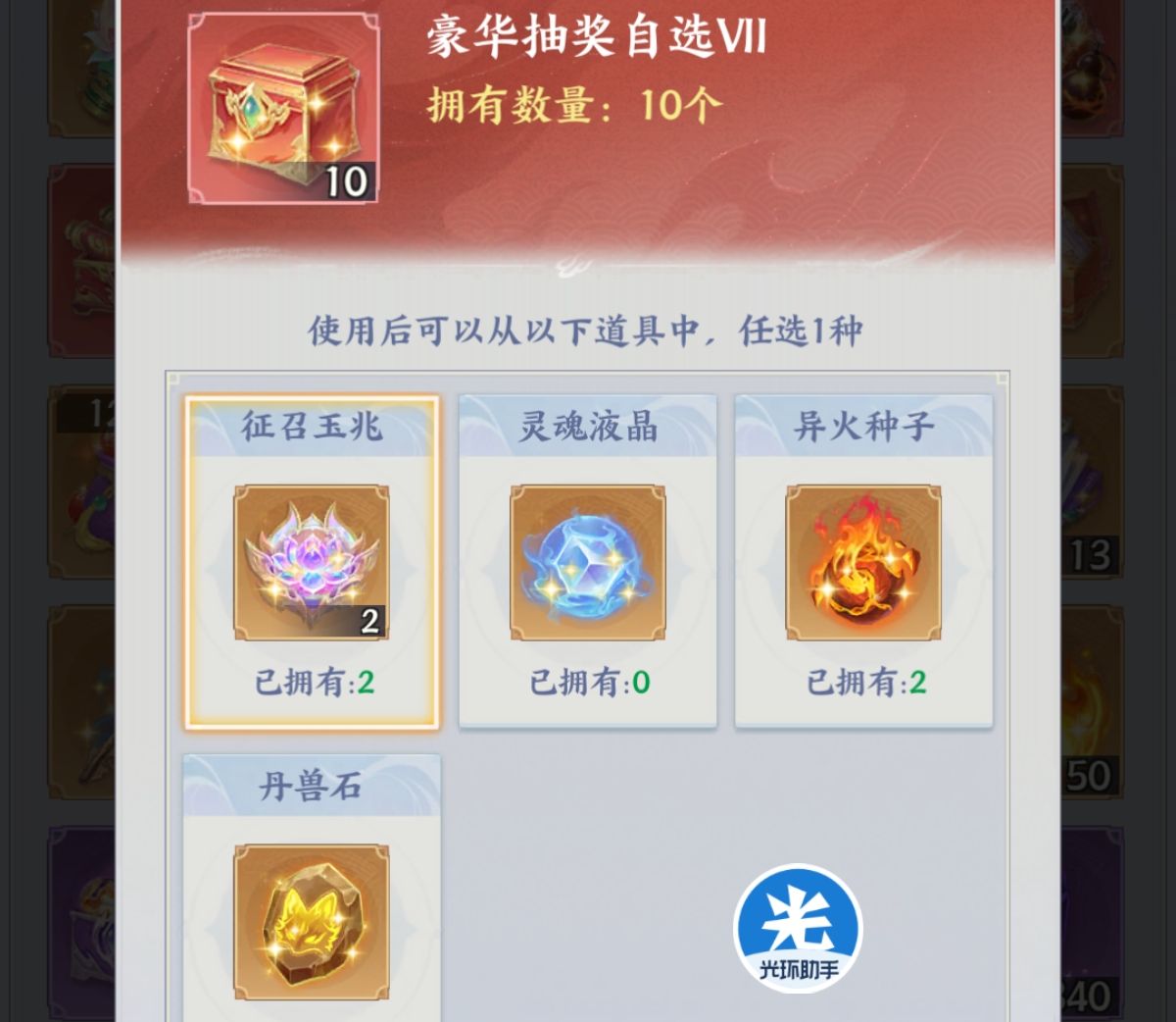 2:【豪华抽奖自选箱子】优先选择思路。答:丹兽石=异火种子>灵魂液晶>征召玉兆
