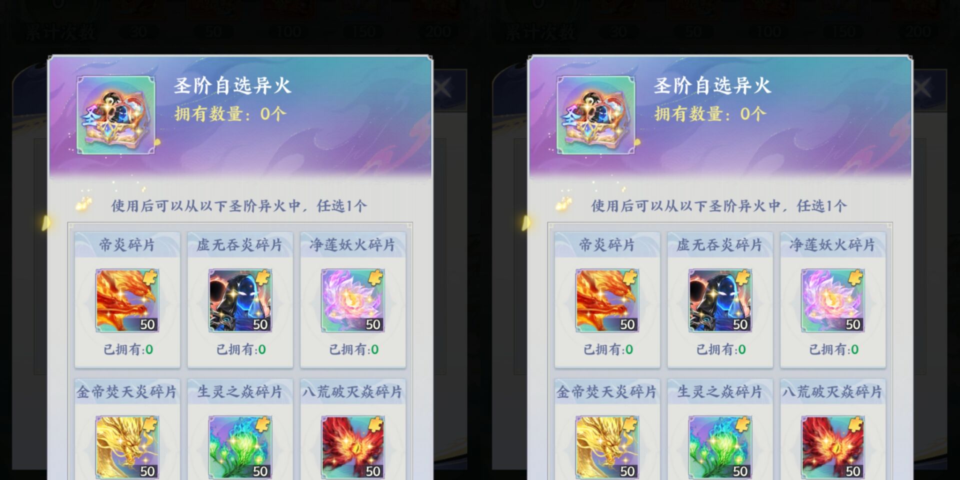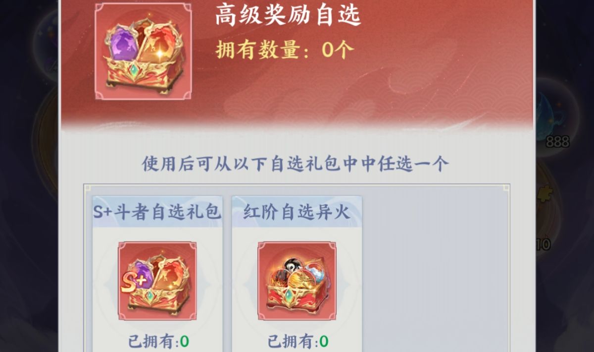 3:【高级奖励自选】优先选择思路。答:毫无疑问优先拿【红色自选异火】用于激活图鉴和升星核心异火。