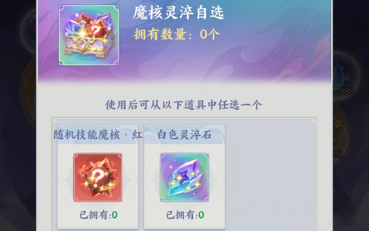 4:【魔核灵粹自选箱子】优先选择思路。答:优先拿【白色灵粹石】用于装备精粹,我们非常缺的资源。