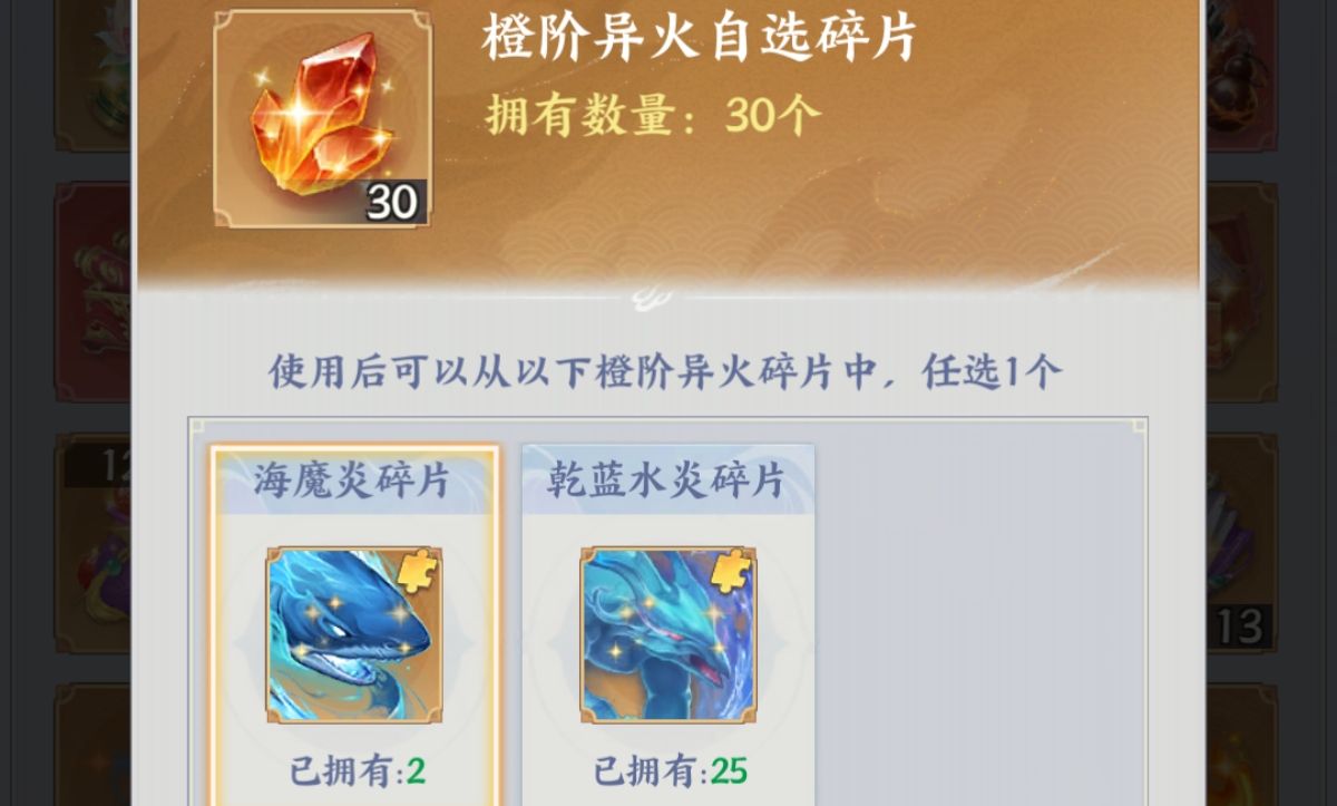 10:【橙阶异火详箱子】优先级选择思路。答︓优先选择【海魔炎】打击敌人后排,满了以后选择【乾蓝水炎】即可。