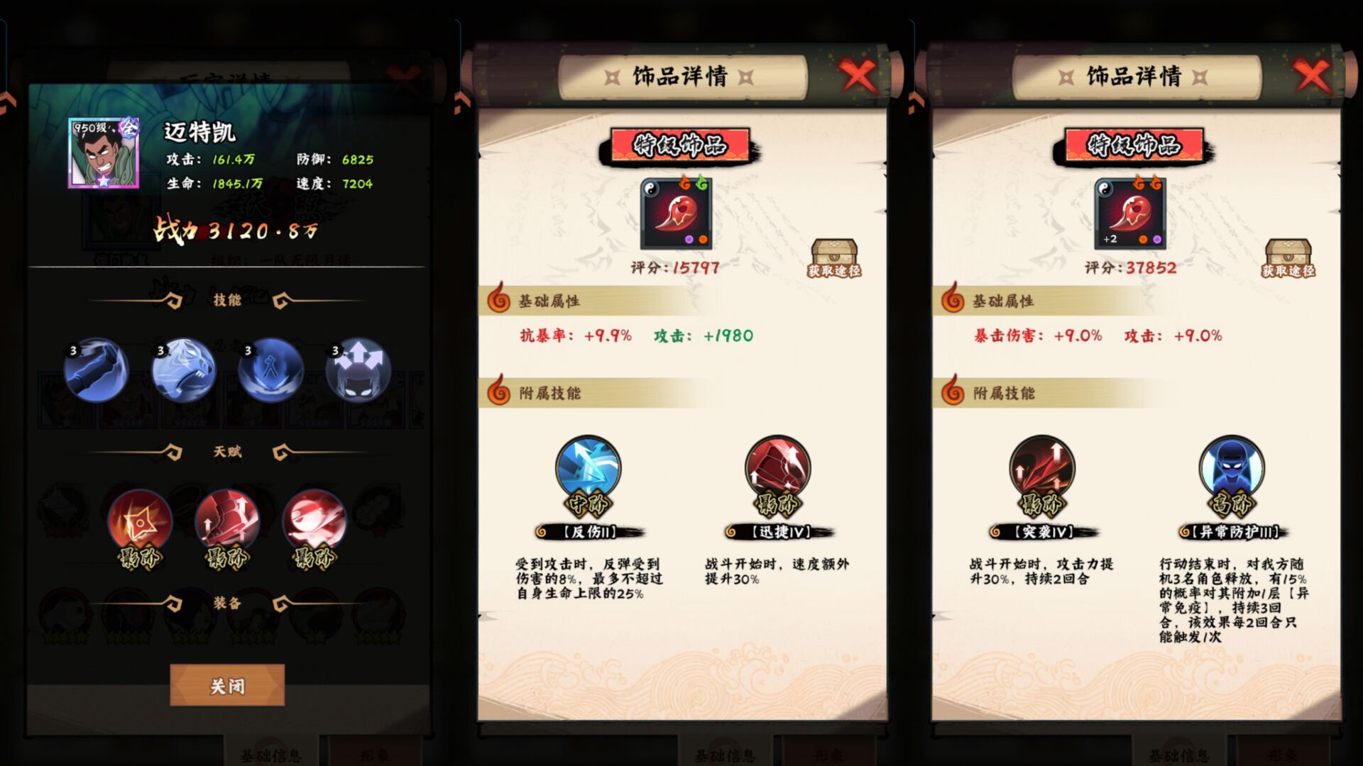 天赋方面选择:提升命中速度攻击就行,鼬神还是比较吃命中,因为月读和命中挂钩。