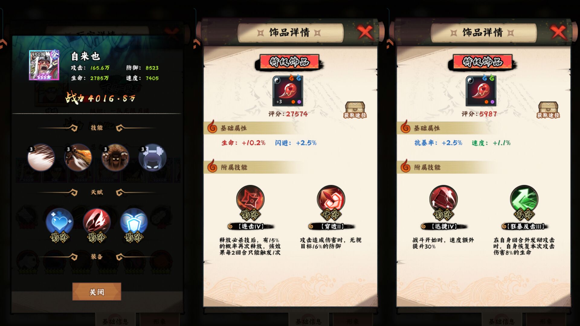八:【sp自来也】饰品技能和天赋推荐。