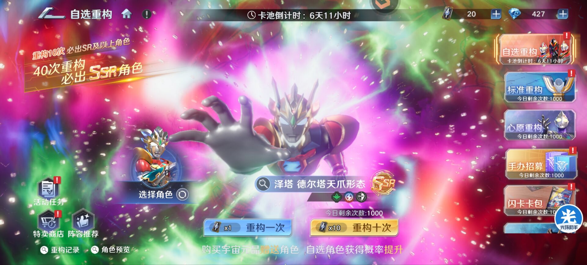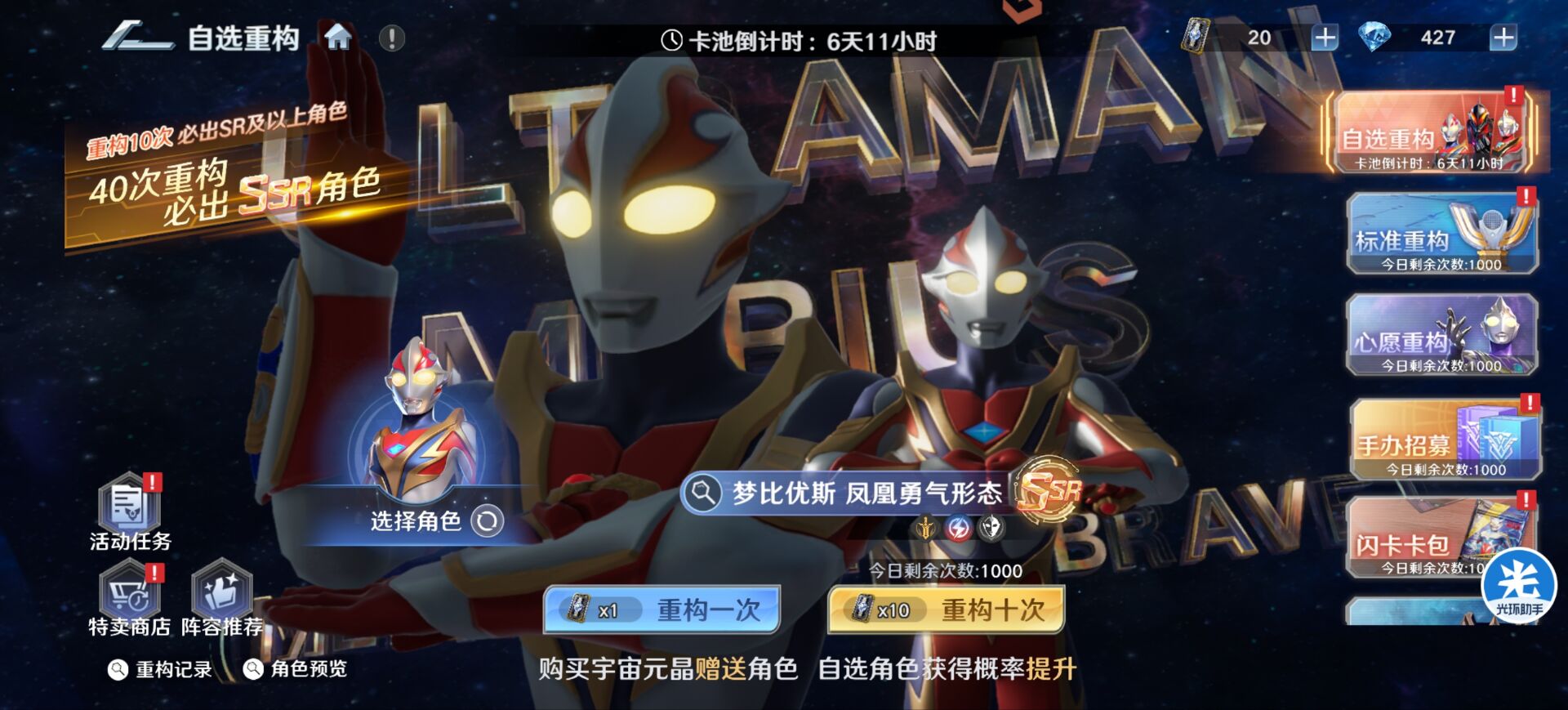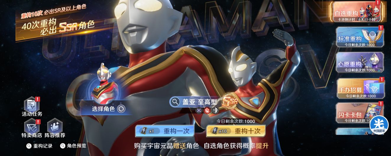 一:【自选卡池】抽取思路攻略。本次能够选择的角色有四个分别是:凤凰梦比优斯、贝利亚奥特曼、至高盖亚、天爪泽塔。