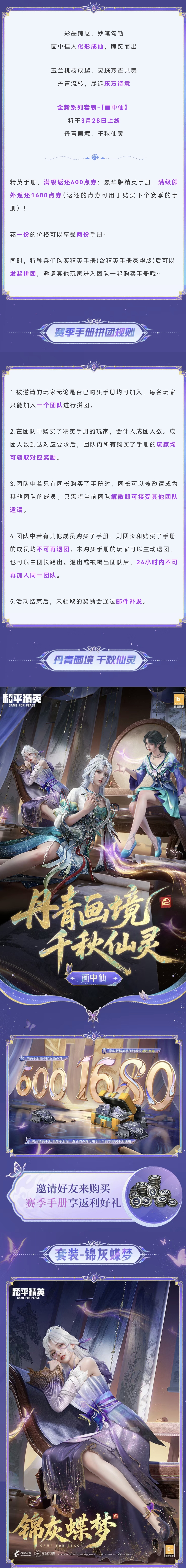SS38赛季限定系列套装-画中仙3月28日上线!还有绿洲赛季手册皮肤等你来~