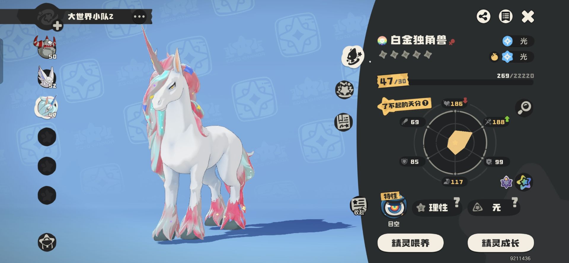 白金独角兽也是最多玩家想抓的精灵之一,伤害很高+颜值在线,而且用【国王球】【棱形球】【织梦棱形球】都可以抓出不一样颜色的效果。有炫彩、白金、粉红色等等,也是最值得收藏的一个精灵。