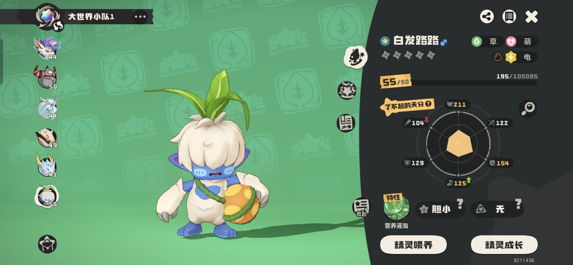 白发露露可以通过《稀兽花种》挑战获得,性格最好带胆小的速度更快,打架速度挺重要的