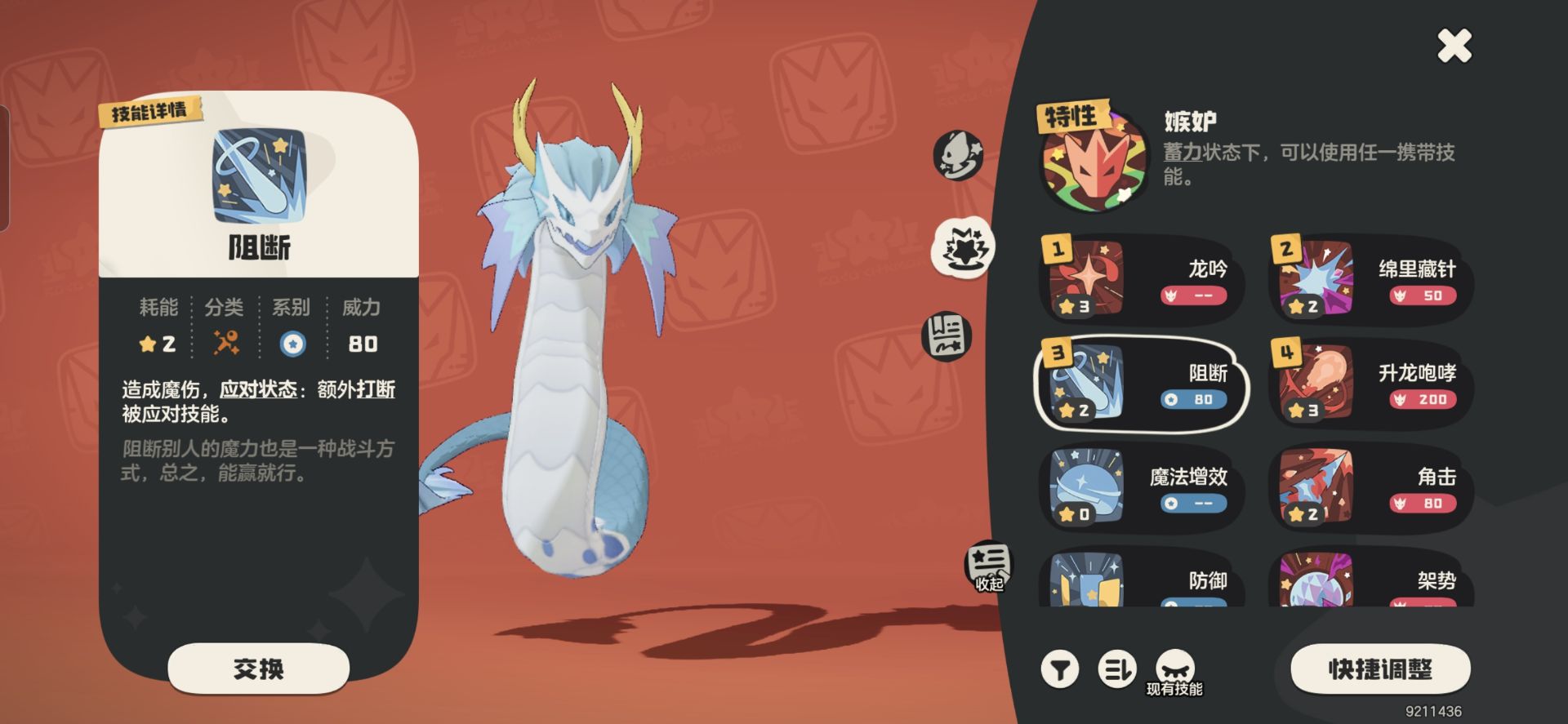 但是获取会比较麻烦一些,需要先获得【伏地鼠】然后进化成【巨大鼠鼹】在升到48级才能获得阻断这个技能,弄完这些整个流程也要半小时以上。