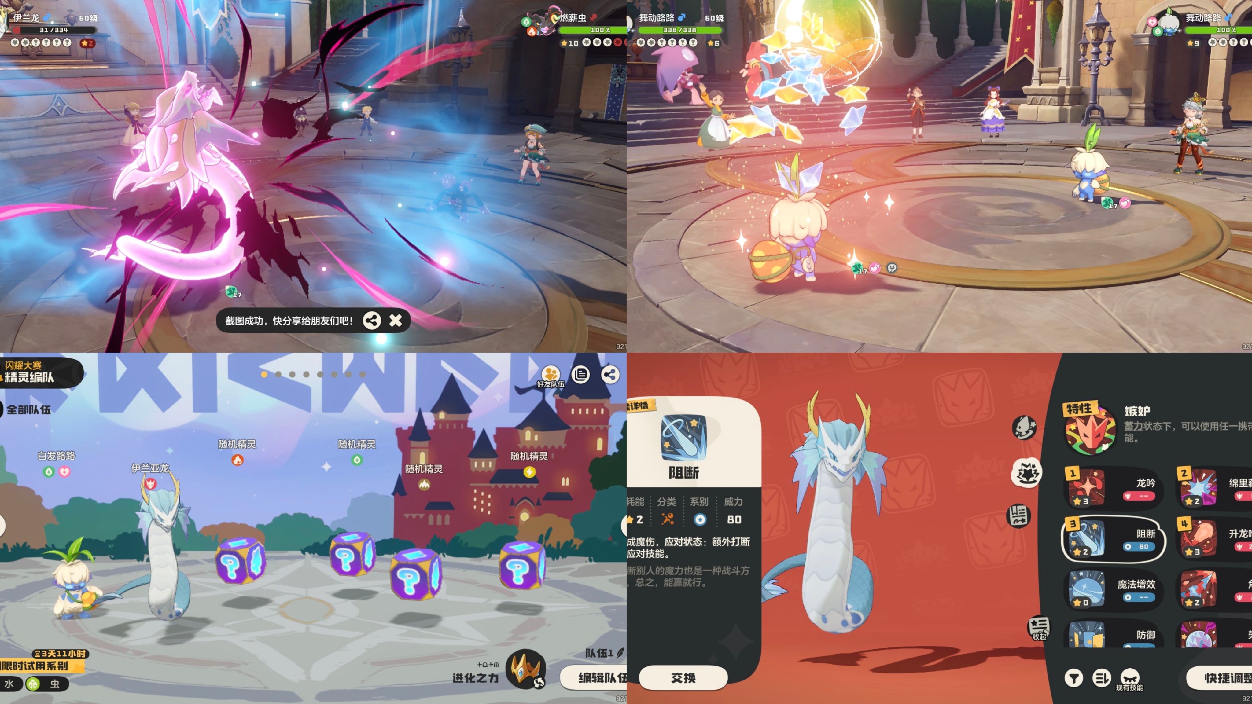 ⭐️对局中千变万化,有可能伊兰龙或者白发露露没有加到状态就被打退或者被阻断,这时候要结合经验去调整技能释放或者是切换成其他随机宠物来消耗对手,这个大家明白就行,自己实战多了也可以悟出来的。