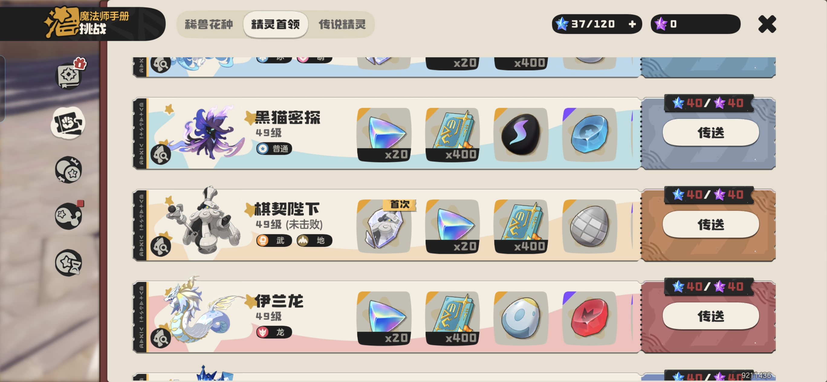 1:需要核心精灵【伊兰龙】【白发露露】。