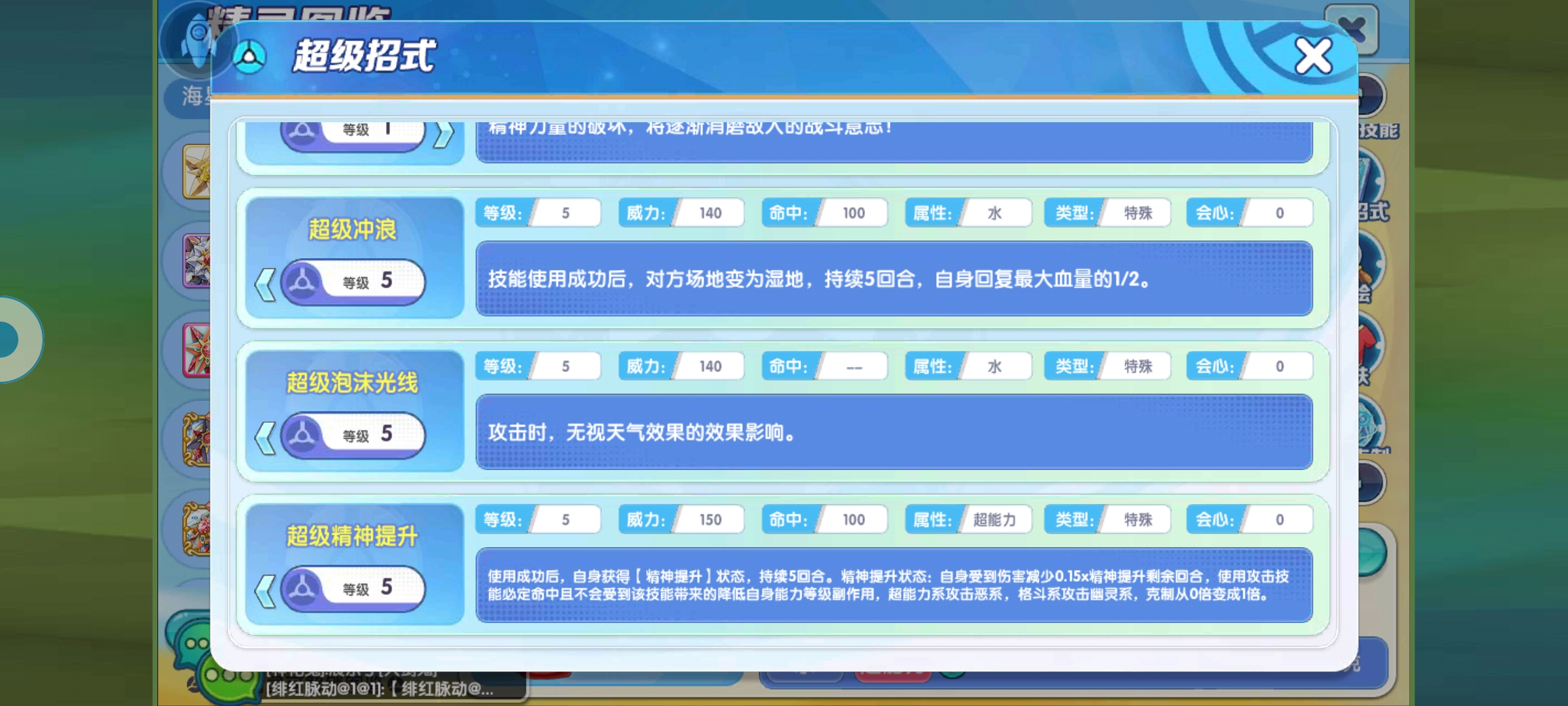它的学习面非常广,这个配招也很有意思,毕竟可以学的技能太多了,个人心里最佳搭配是保命加输出,当然也可以带水泡防御游走中转,这里面这些技能都能搞到,水本和超能本属于基础技能,直接双攻击打,对它来说更加适配,然后虽然可以缩小,但是很少有机会赖场进行,因为即便面对辅助,可能一个替身,防止对方打骚扰,太强势的也能秒杀它,可以给它开了替身,可以在有了容错率后强化,接着奥特力量高速输出压制,在低中段局应该非常强大,真支援到了站场很少有宠是一合之敌,其他配招也可以自由切换,它的学习面非常充足,可以选择多种威力不俗的输出技能,大家可以根据自己的队伍盲点选择搭配。