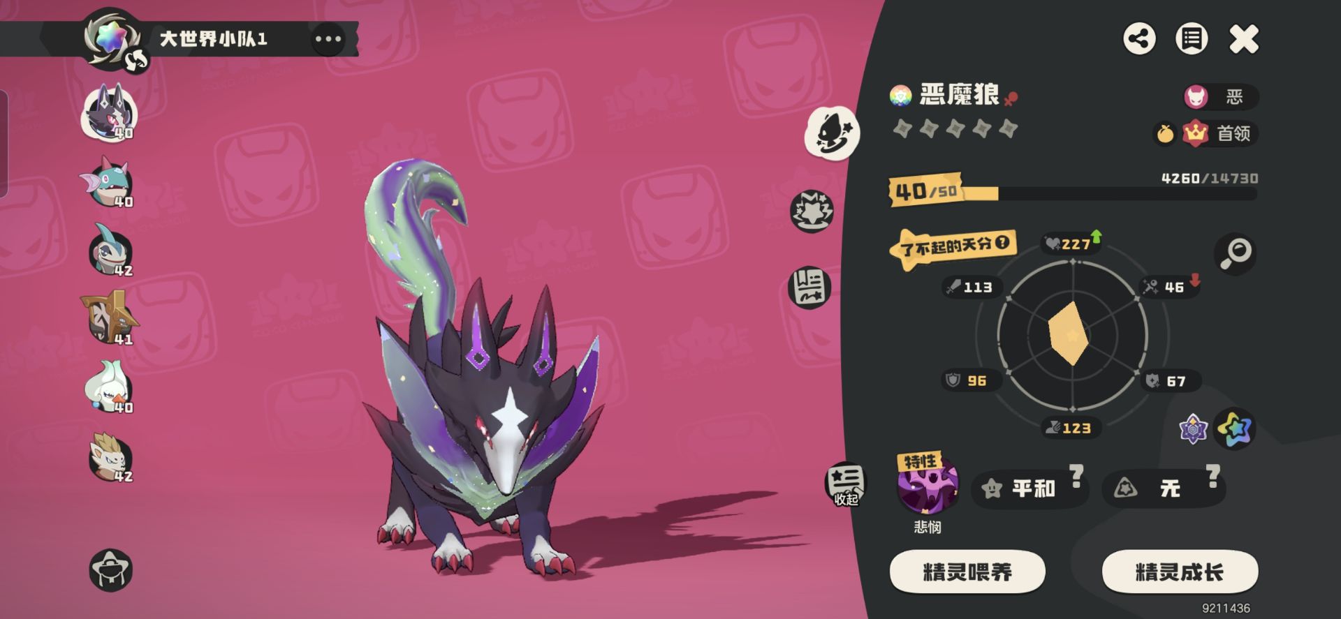 然后孵化出来,最好是用国王球孵化,这样可以保底天分,另外如果你是追求极致的话,恶魔狼性格最好带加速度的,才能在pvp中发挥最大的优势。
