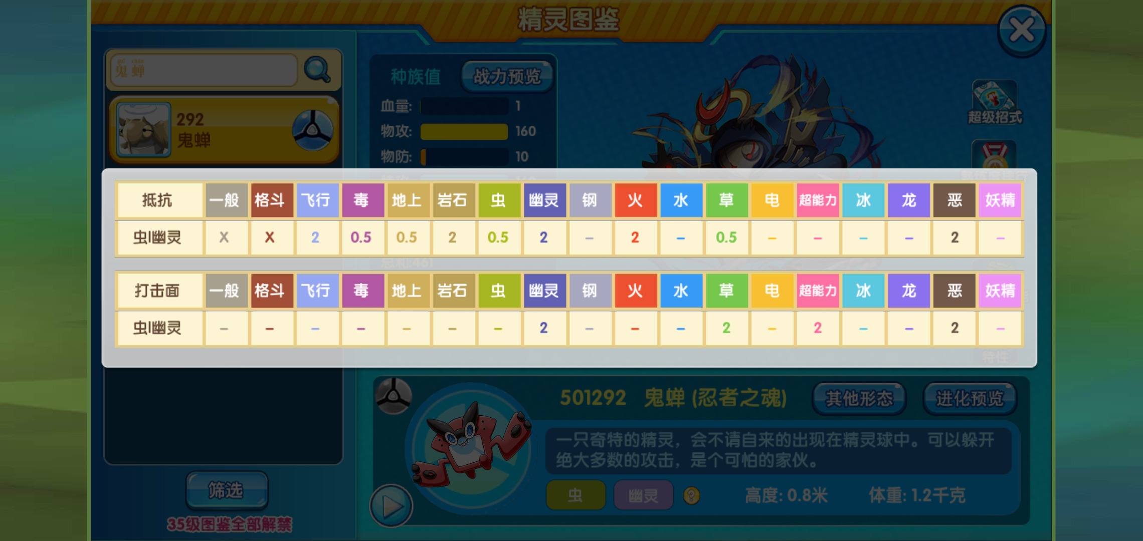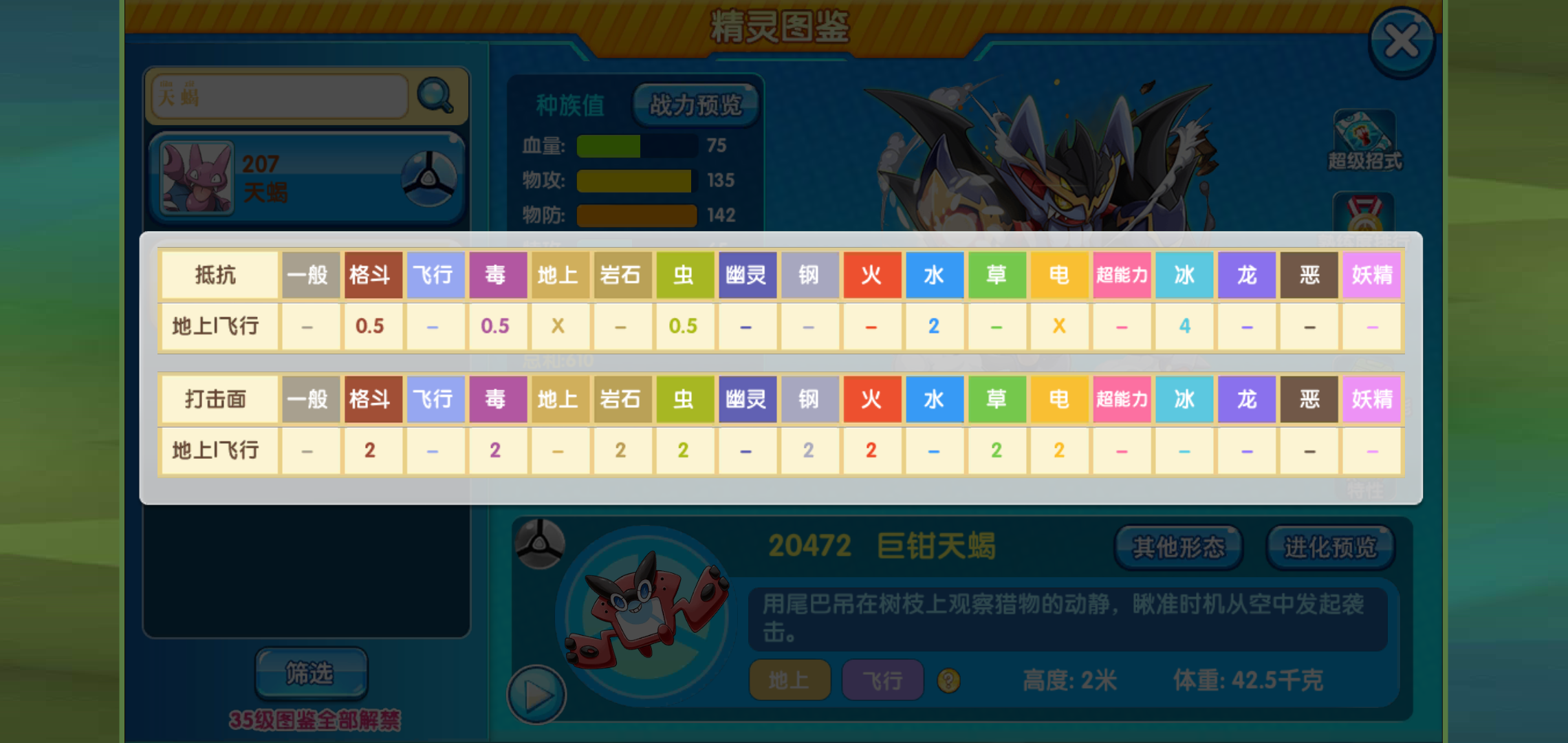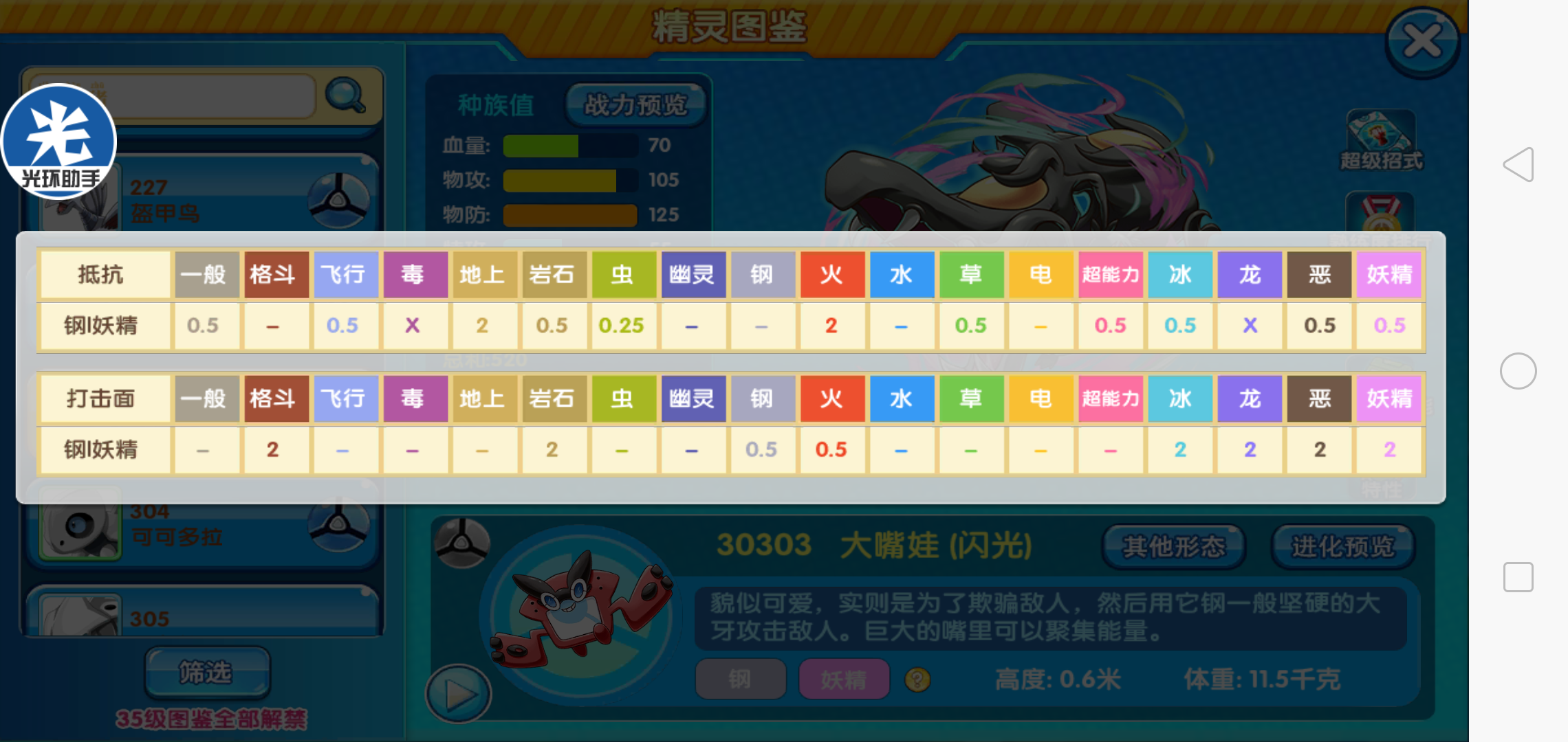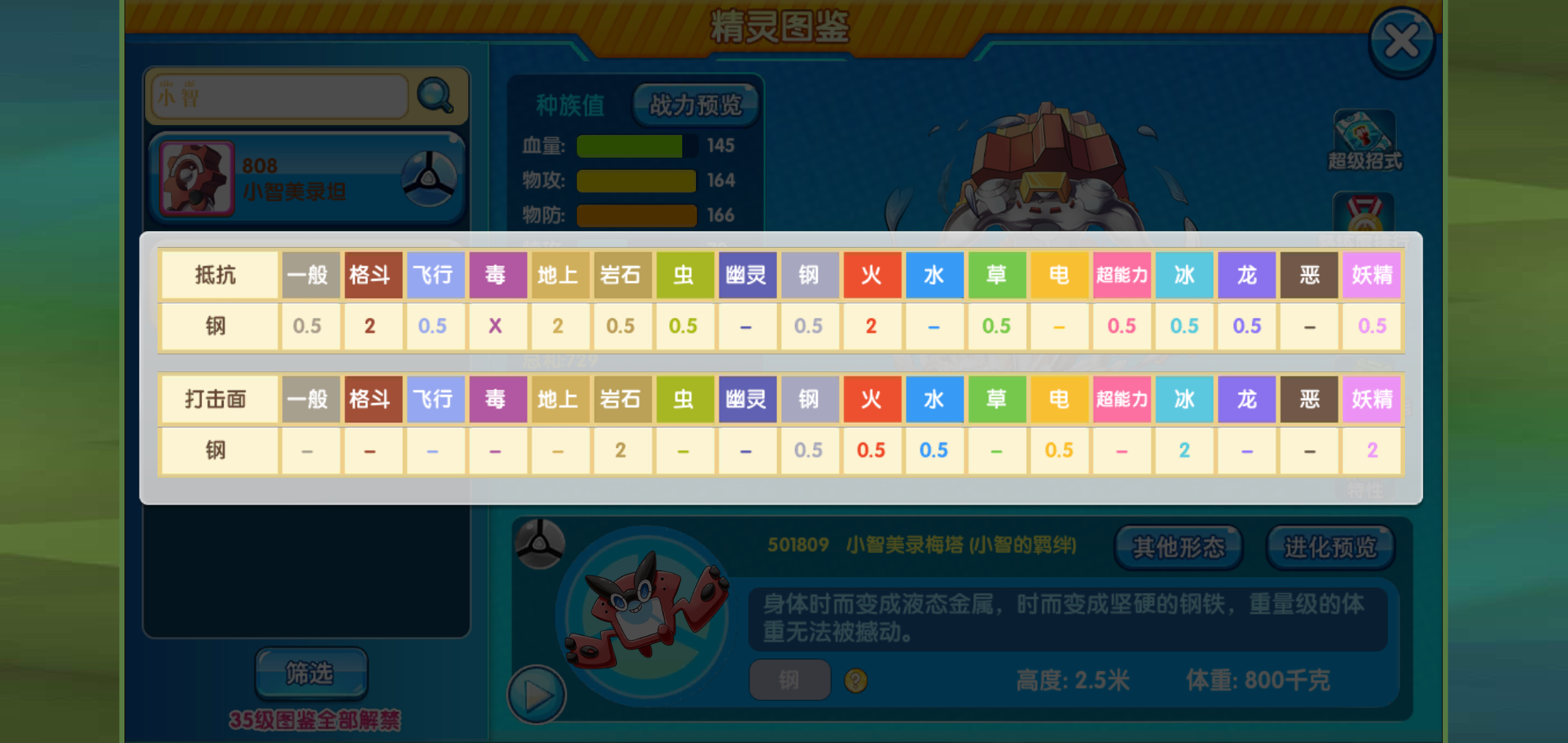 从上面可以看出x弱2倍地,岩,龙。2倍抵抗虫,钢,电。4倍抵抗火和草。在打击面他本系克制虫,钢,草,冰,龙。在属性方面他是非常优秀的。