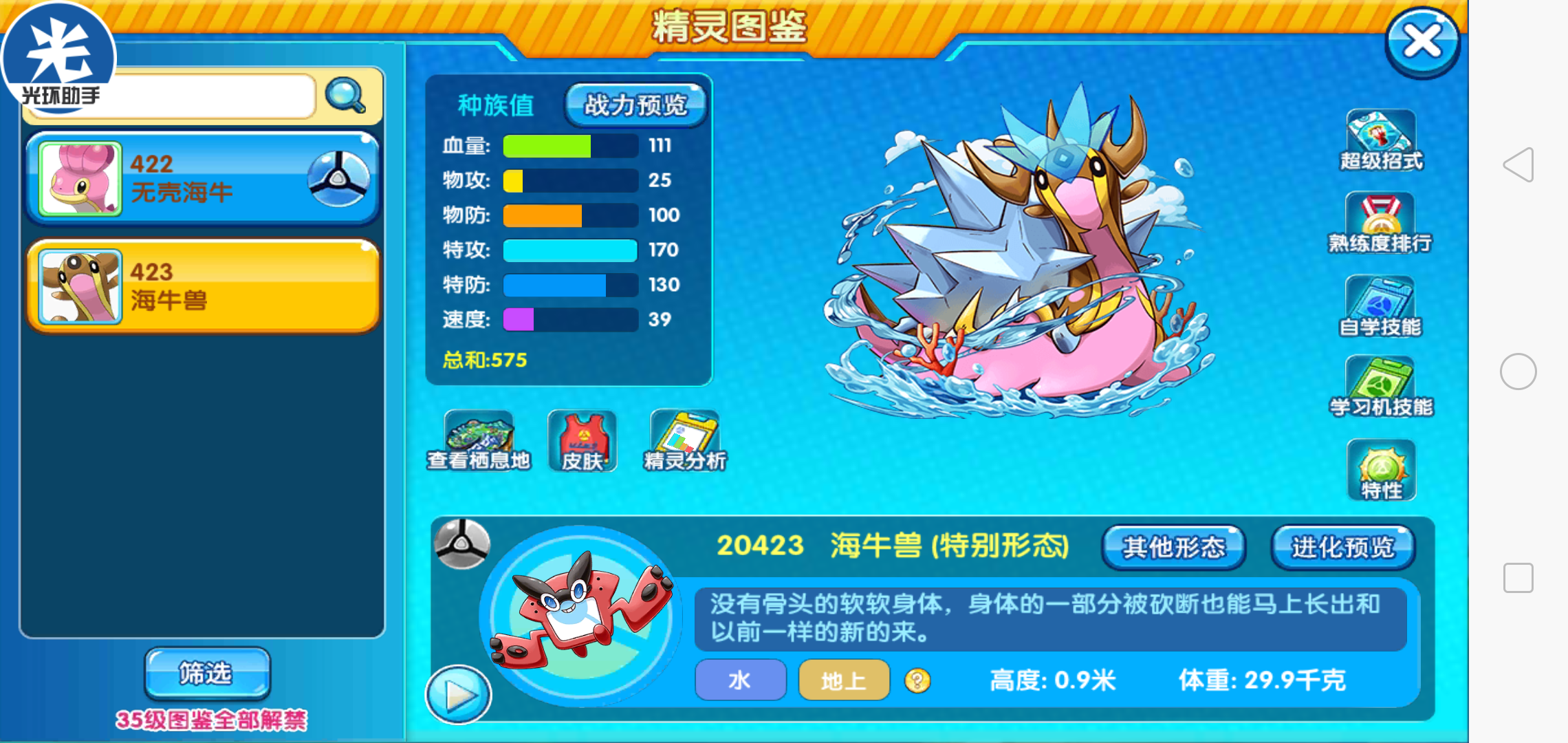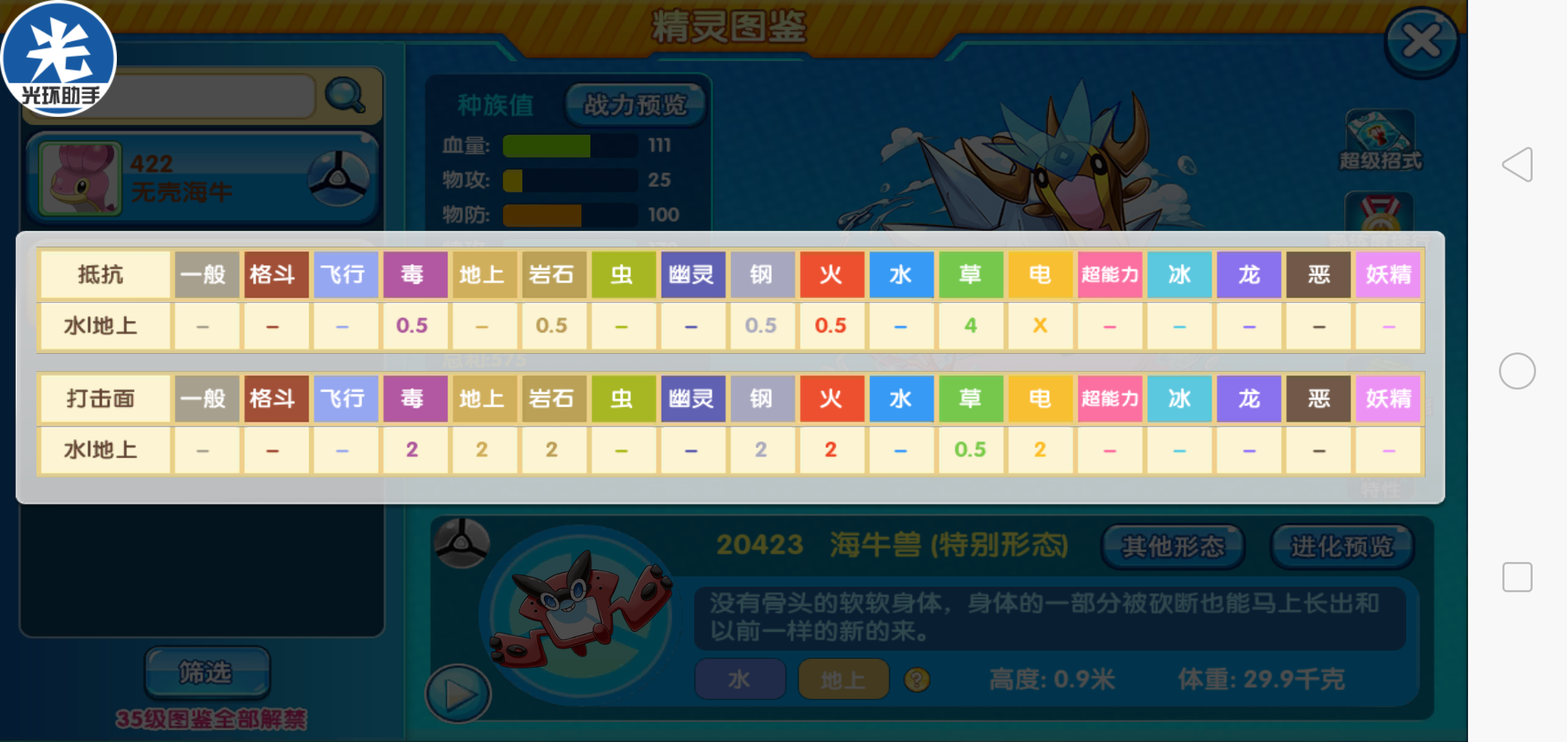 海牛兽拥有极高的特攻高达170,并且双防不错,弱点是速度,毕竟是个蜗牛嘛。海牛兽水加地面属性,双倍抵抗火钢岩毒,免疫电系;但是有个致命缺点就是弱4倍草,正好喷火龙∑抵抗4倍草,他们2个正好可以互补。
