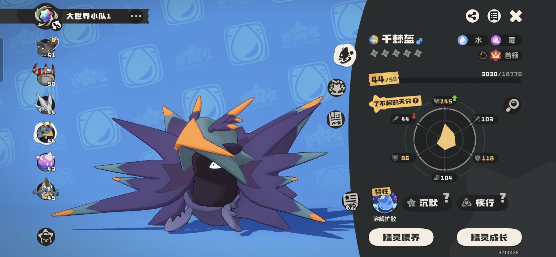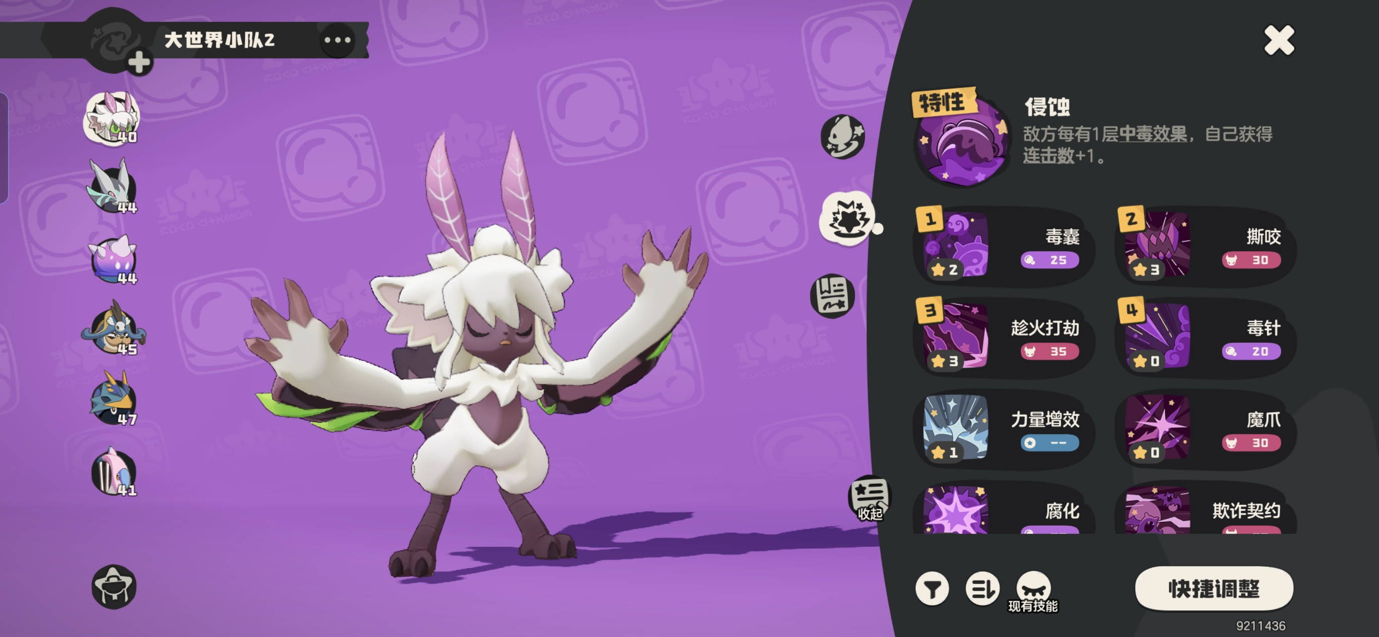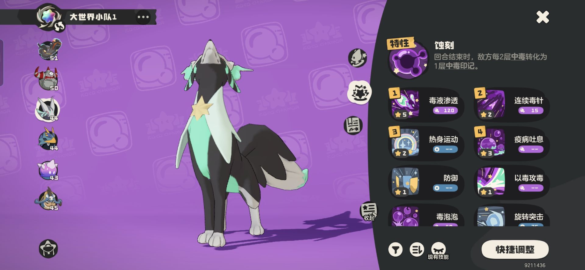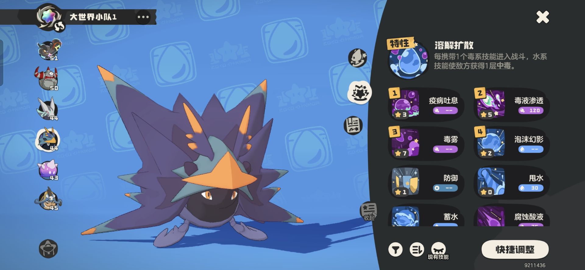 如果你觉得这样阵容还不稳也可以补【海豹船长】【月亮砣】这种带有《泡沫幻影》技能的精灵来进一步提升队伍的叠毒效率和容错。