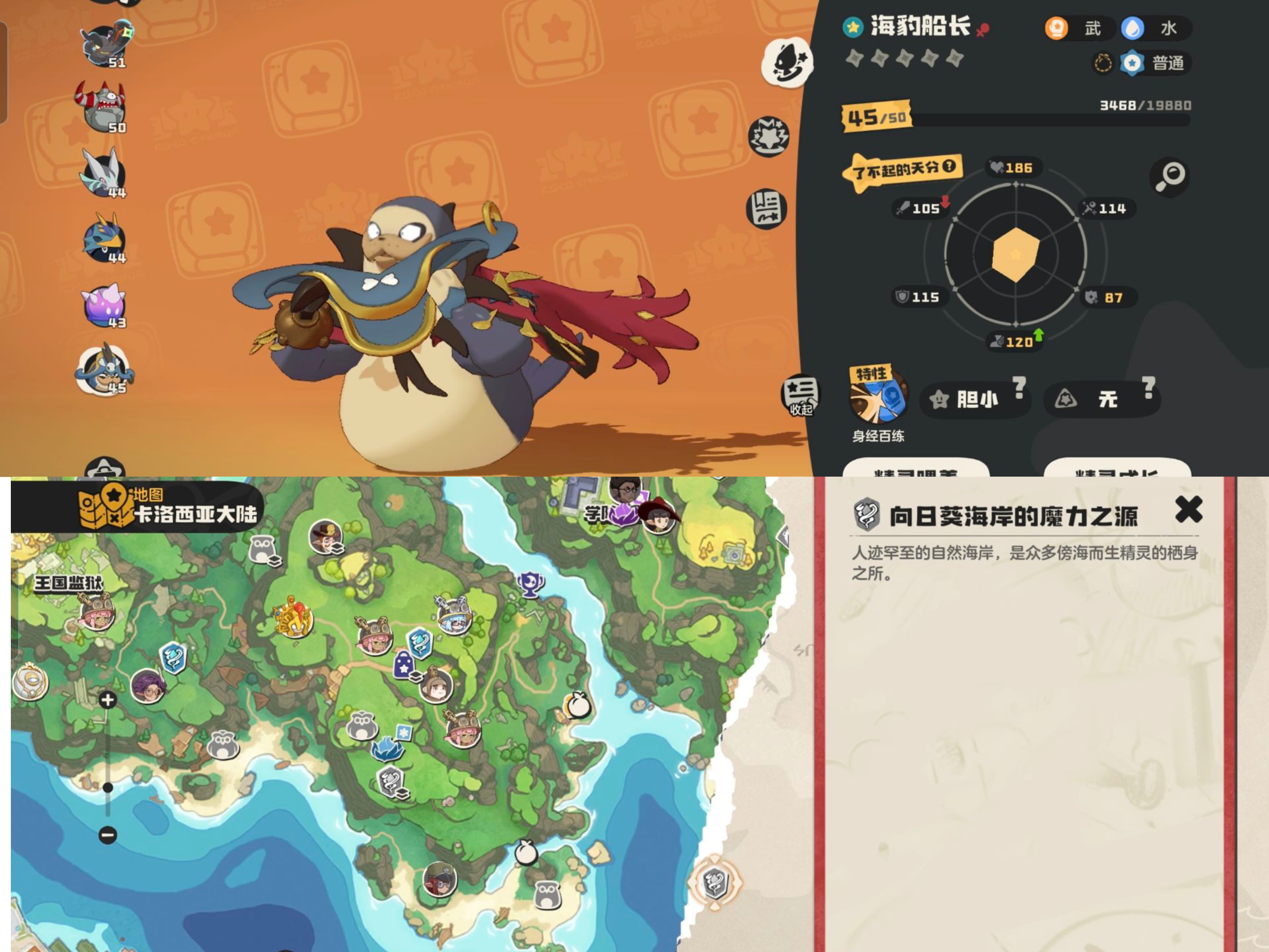 ③【海豹船长】在地图最右下角的向日葵海岸的传送点附近就可以抓。