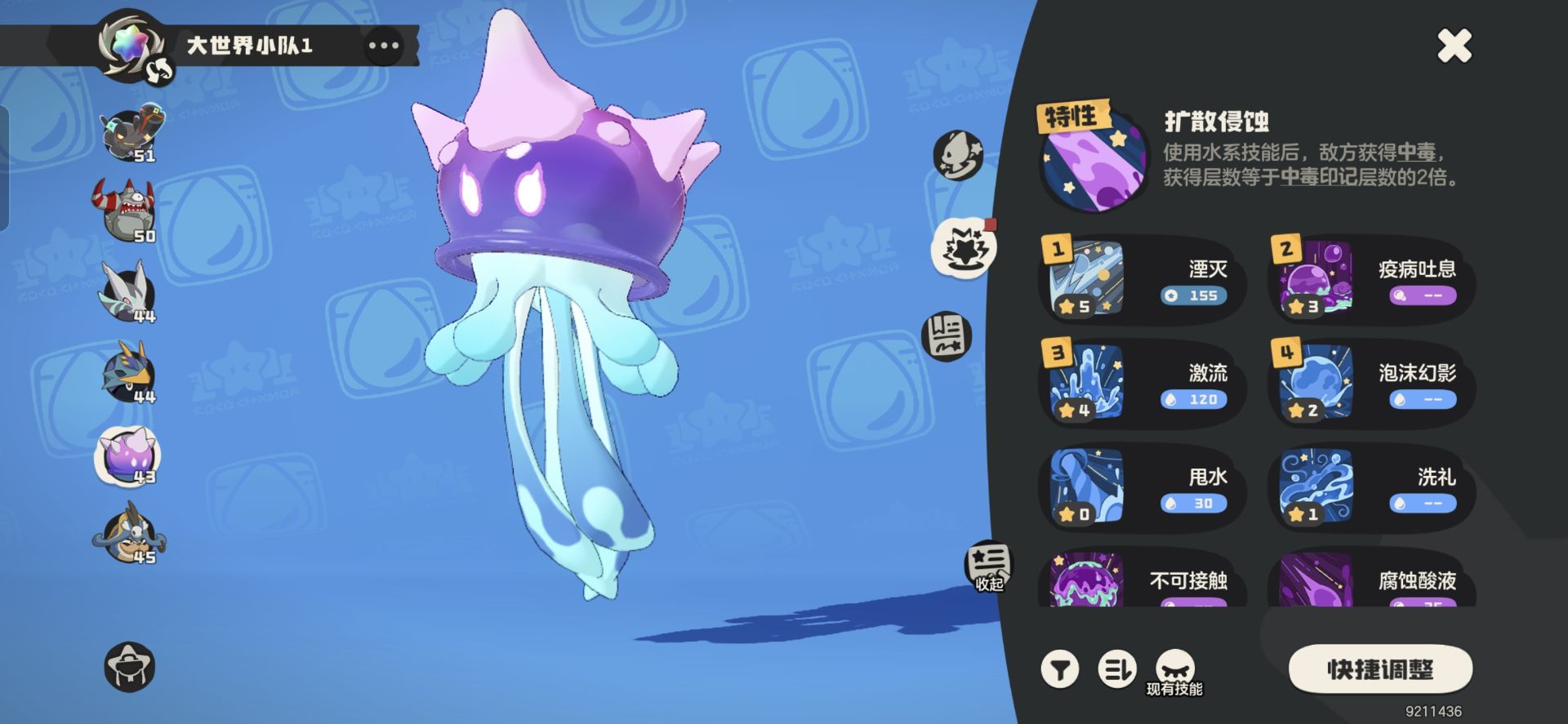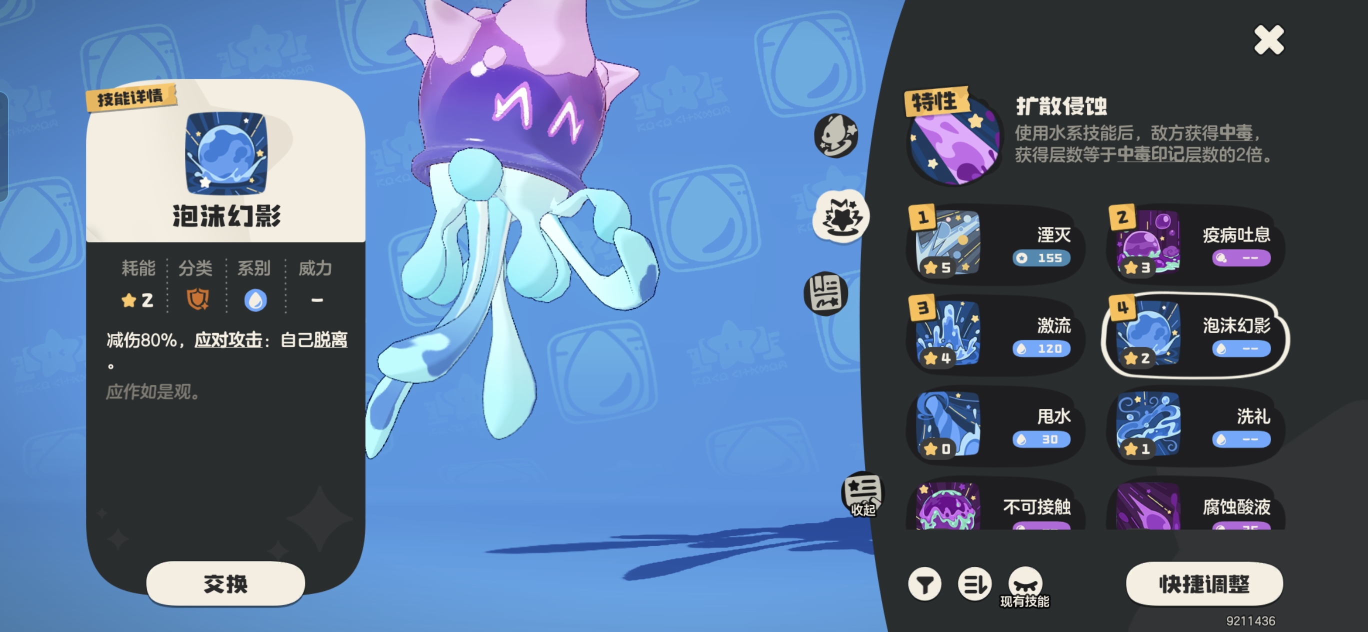 ③【琉璃水母】技能推荐:泡沫幻影+疫病+甩水+潮汐。