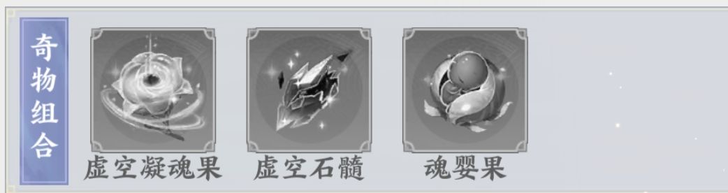 因此可以优先拿:虚空凝魂果、虚空石髓、魂婴果这三个奇物激活这个组合。