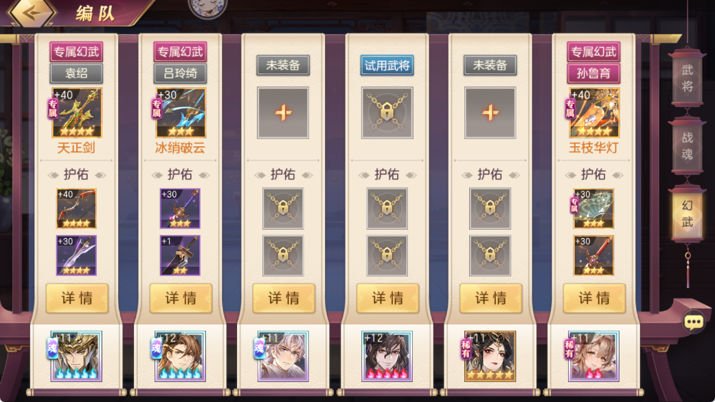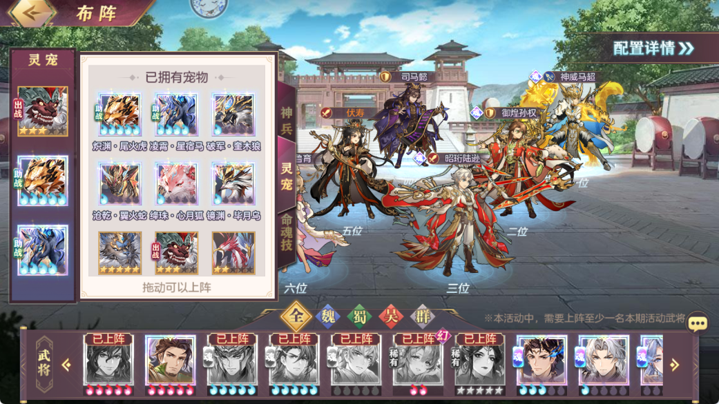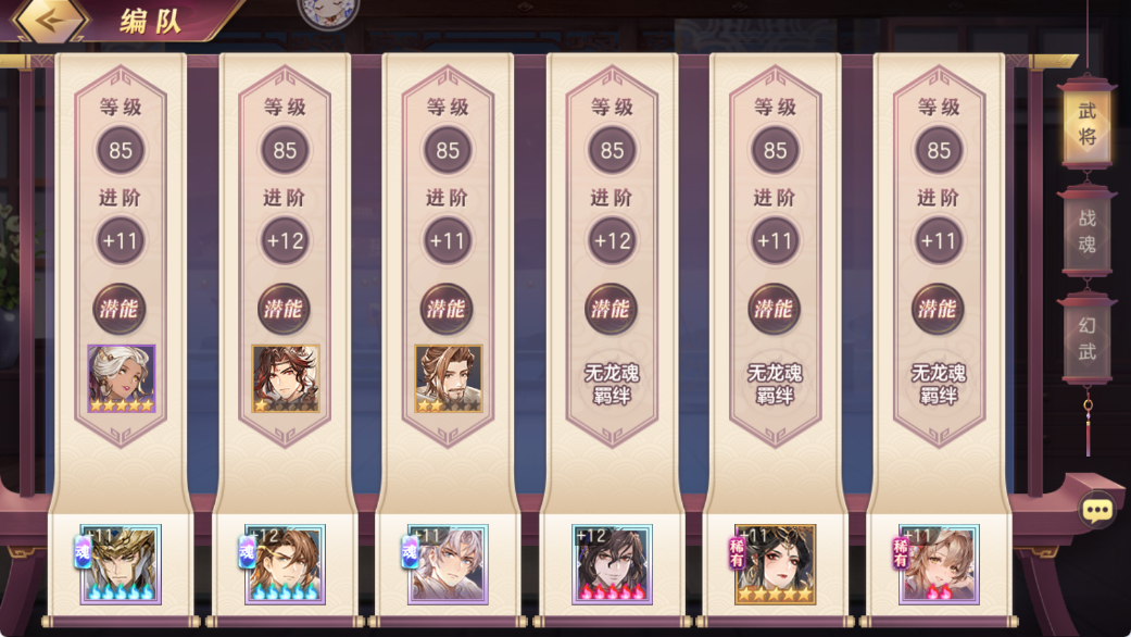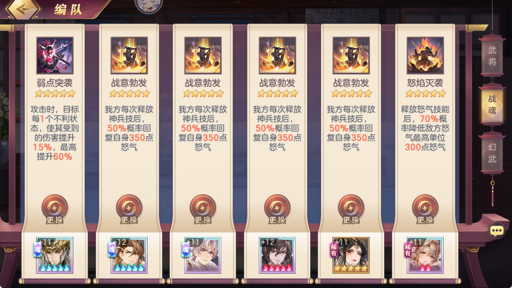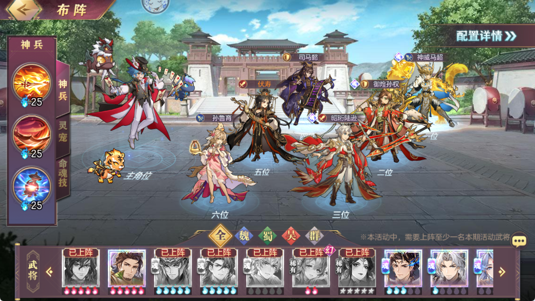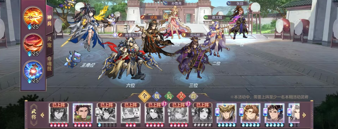 摇摆位可选择:专武马良>伏寿(5星)>孙茹(5火)>其他