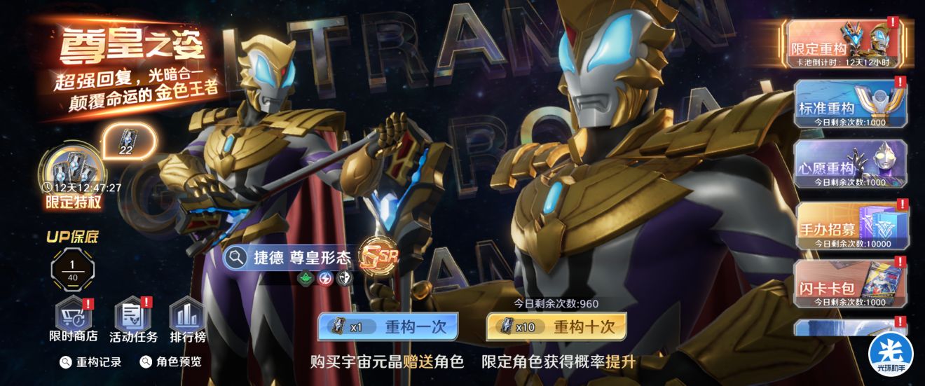 目录:一:【捷德尊皇形态】强不强?优缺点在哪里?值得抽吗?