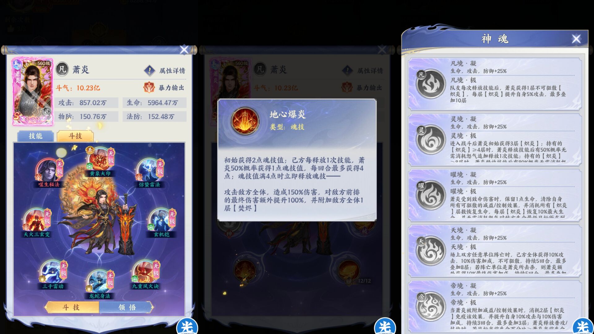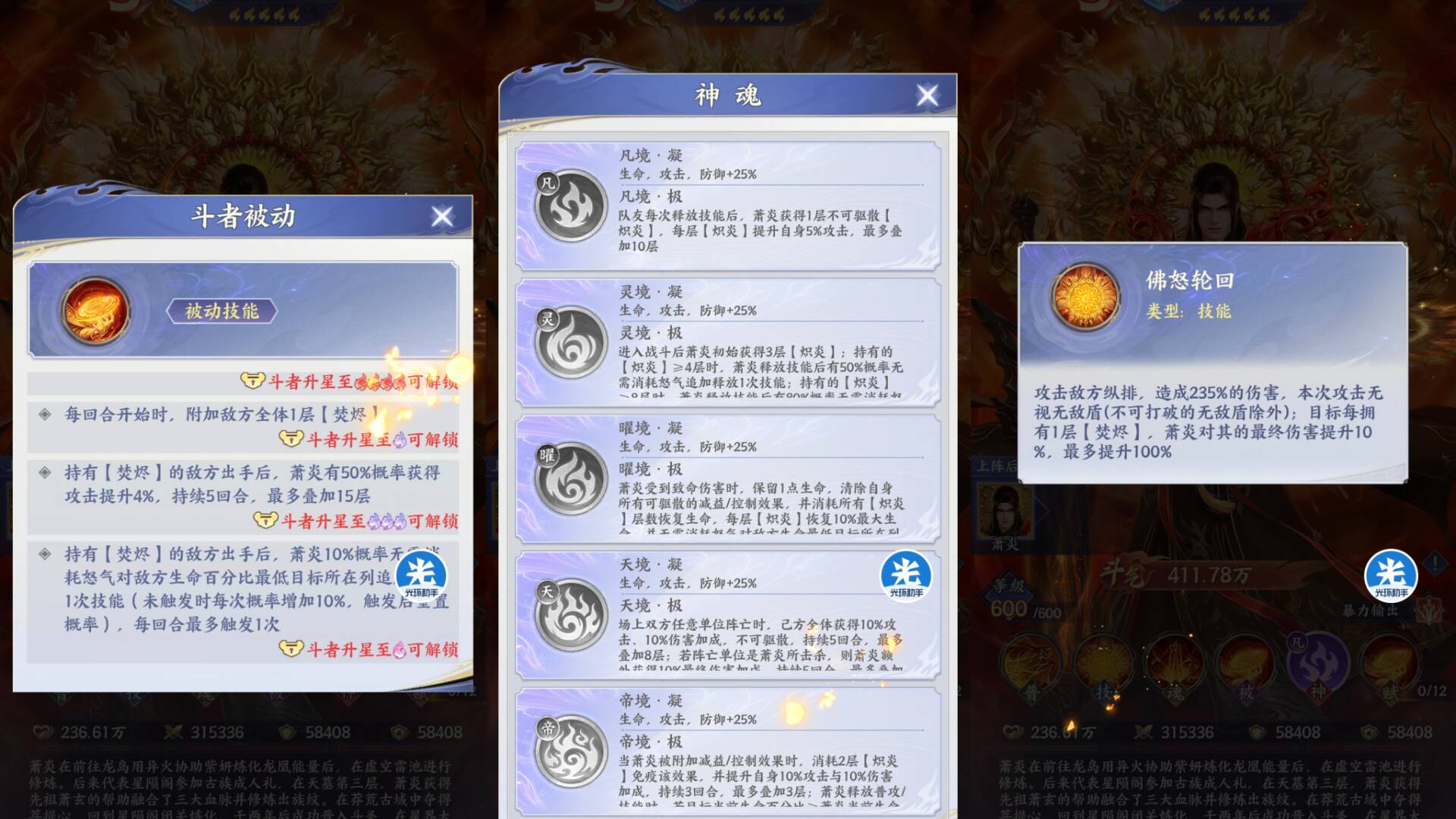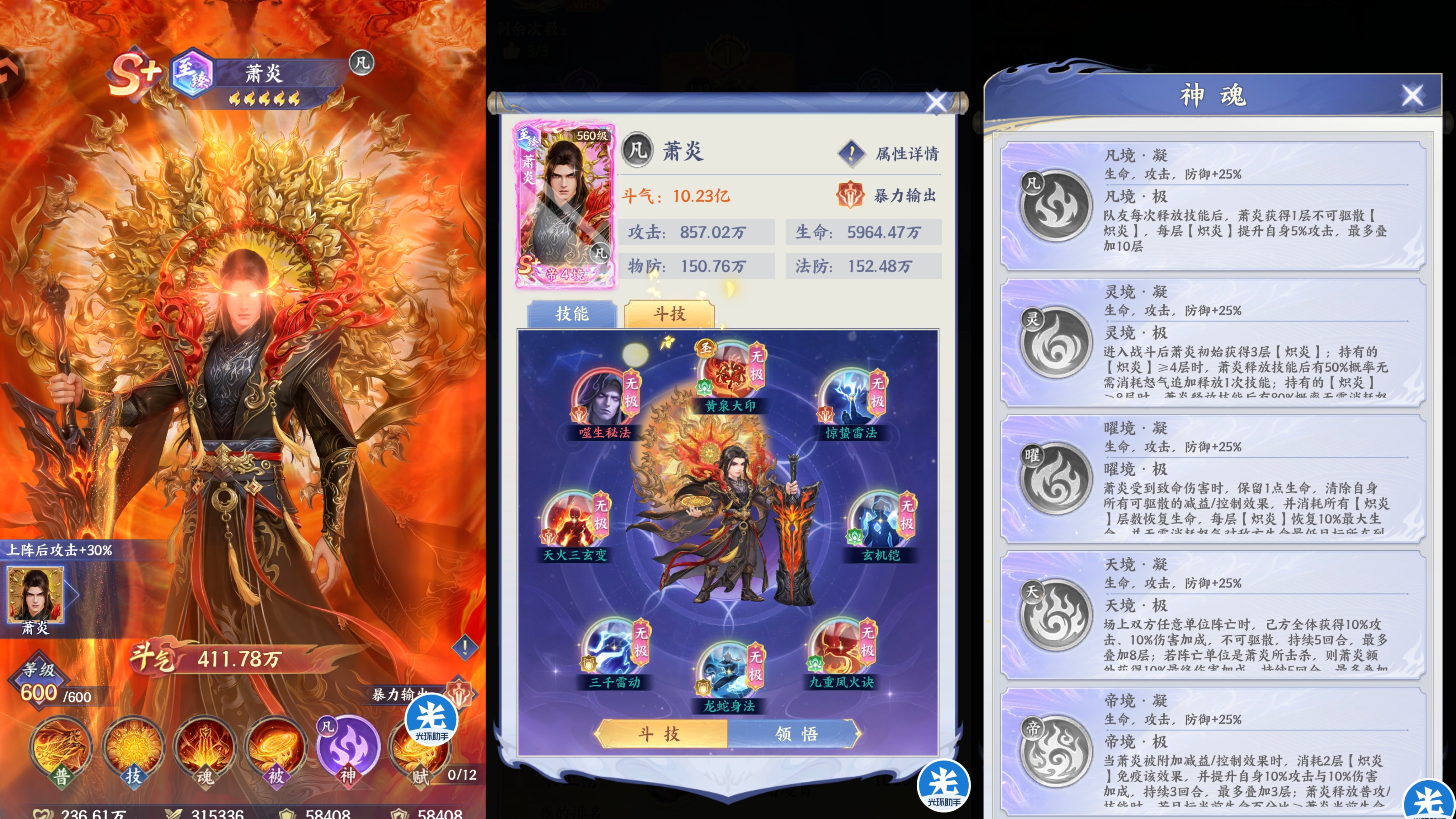 总结:神魂的提升非常大,全面加强了萧炎的伤害爆发、追击能力、还有锁血保命、极致增伤、免疫控制等机制。