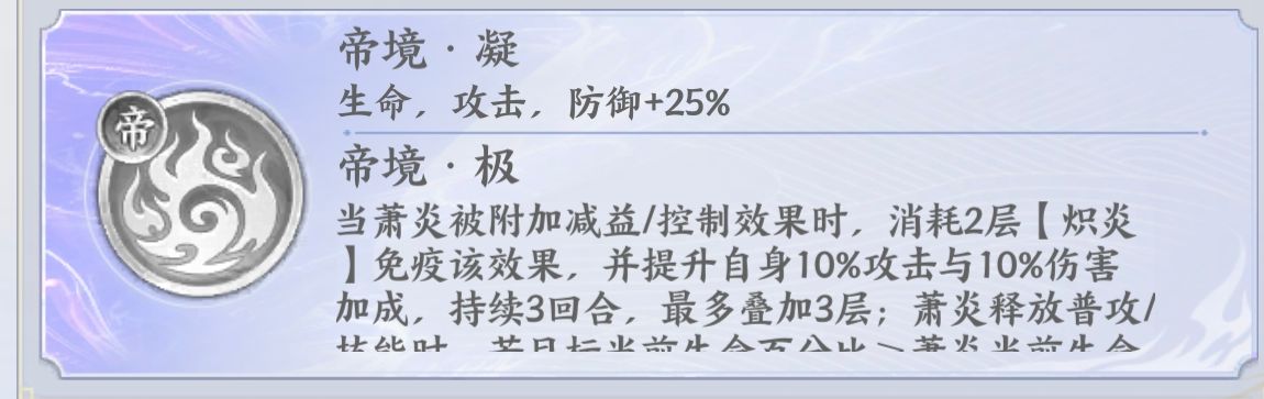 ⭐️【帝镜神魂】能够免疫敌人的控制和减益,同时可以进一步强化萧炎的输出伤害。