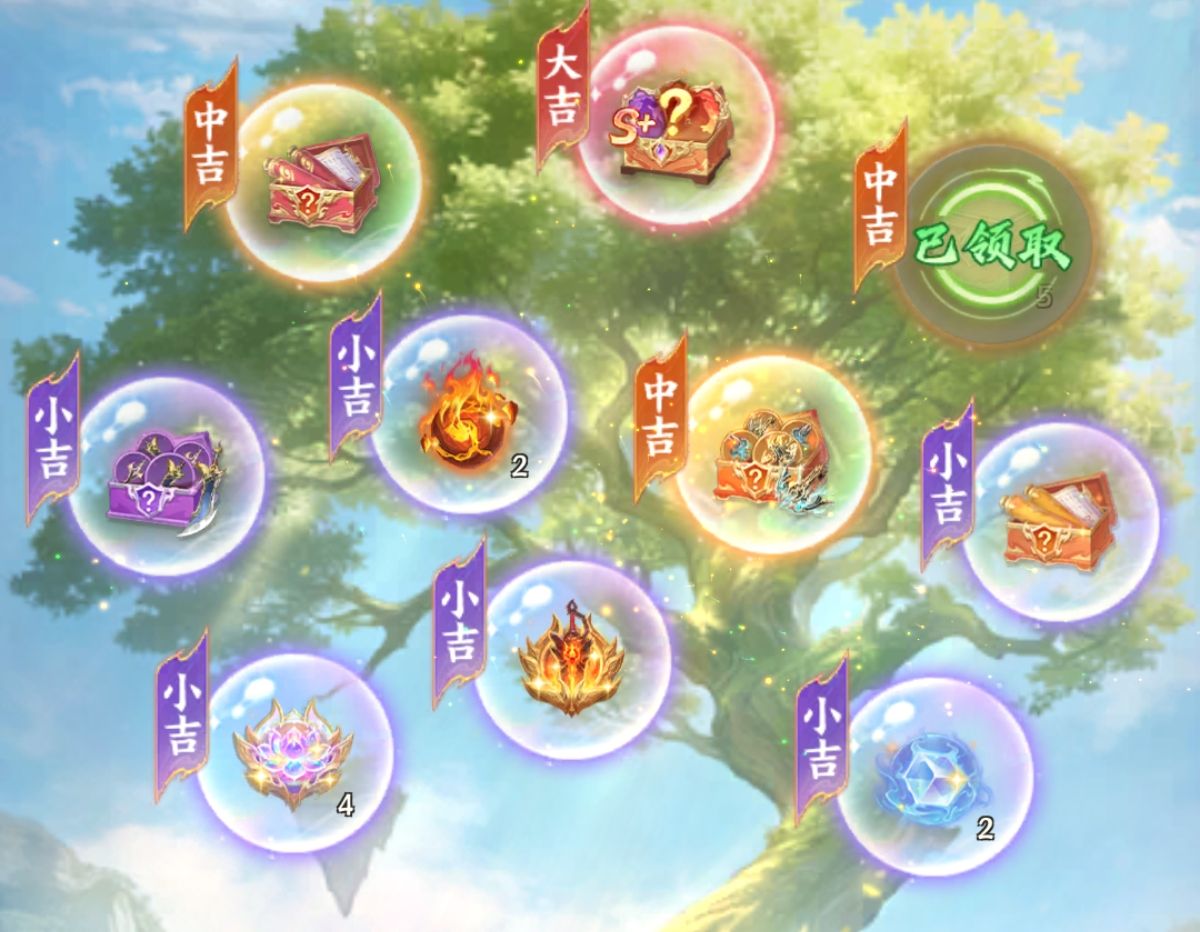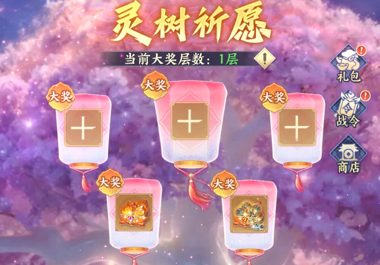 3:【灵树祈愿】活动核心玩法。本次活动的核心奖励内容大奖一共分为5个灯笼