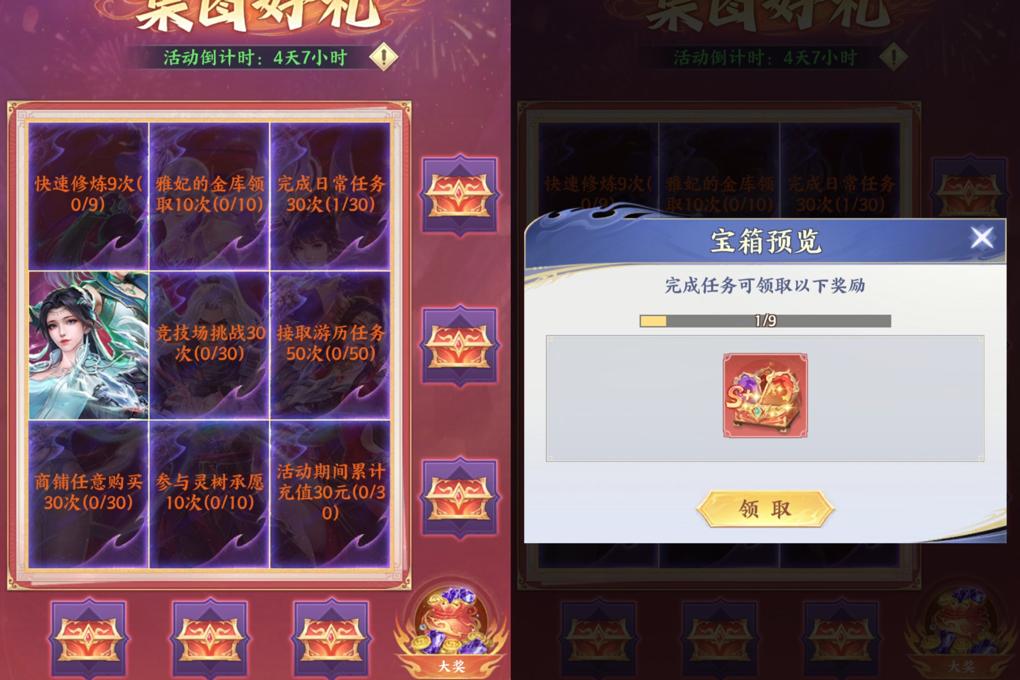 ①中间的灯笼奖励最好=【大灯笼奖励】。