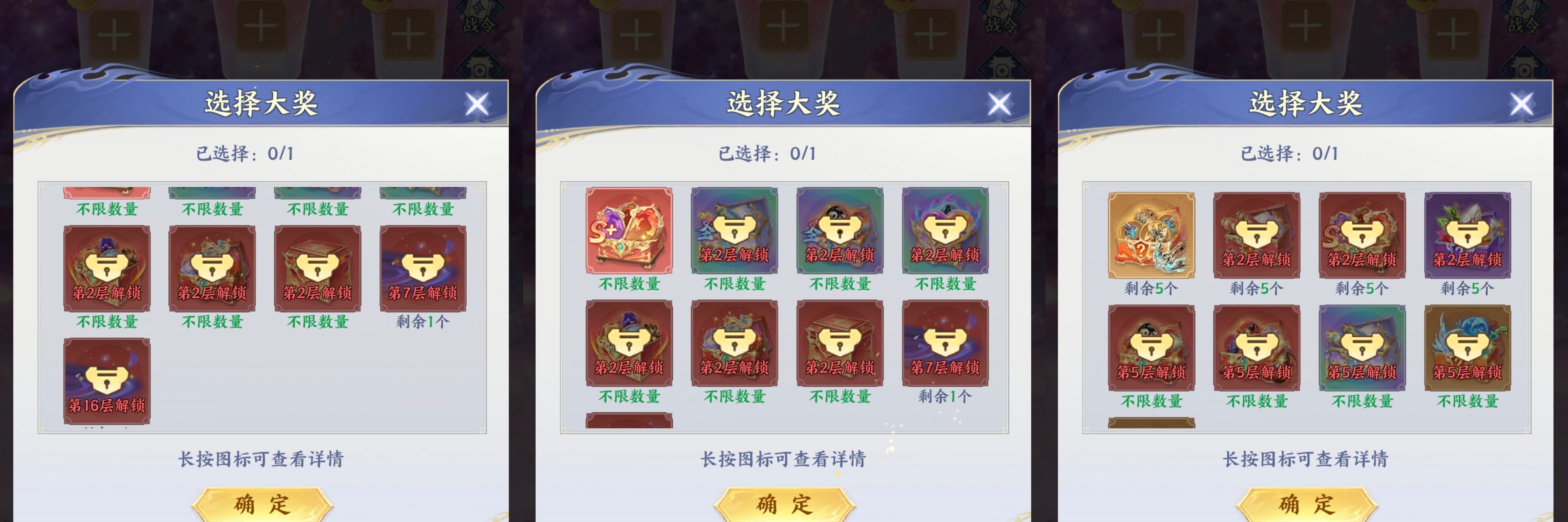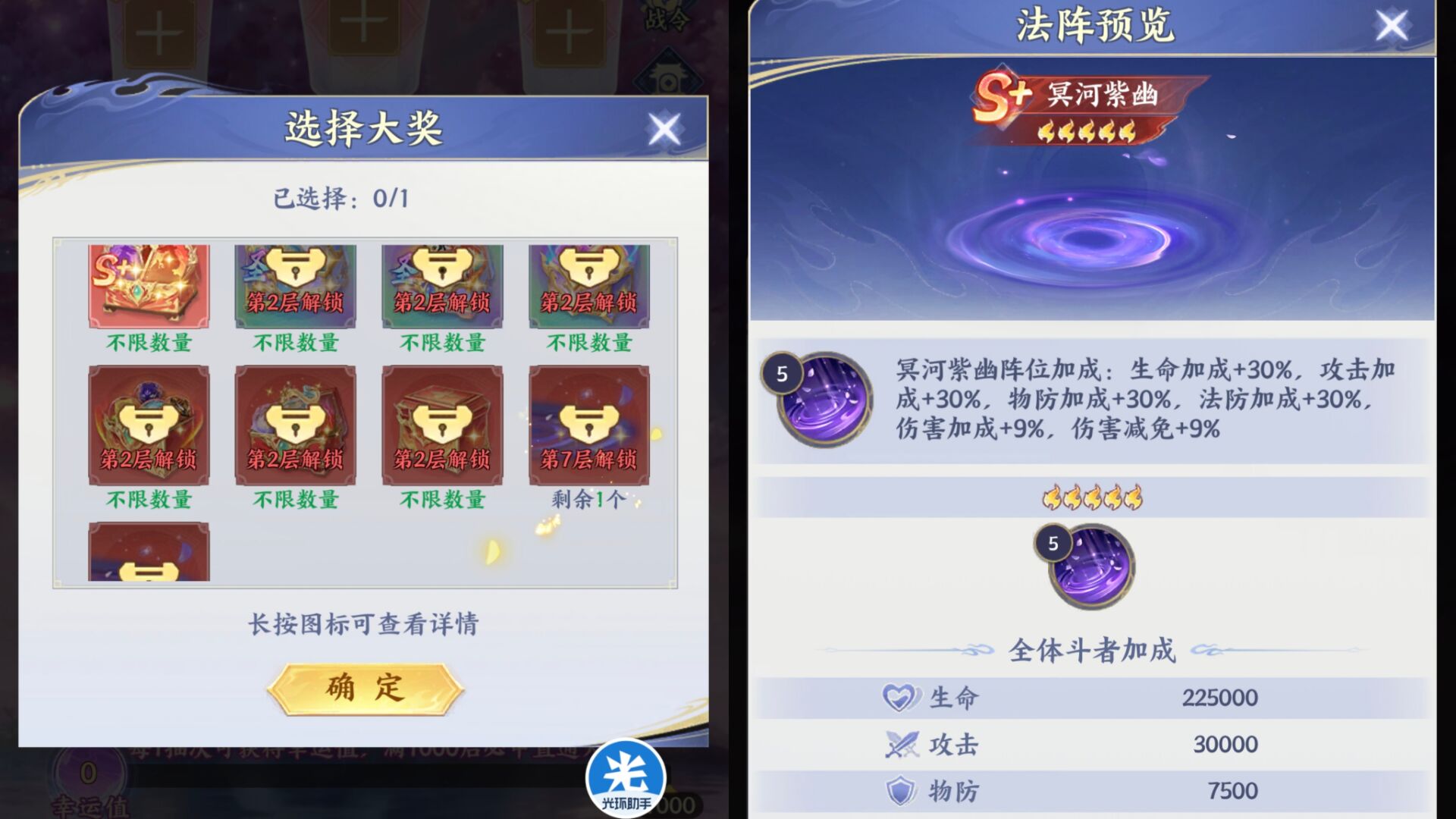 部分灯笼大奖里面的奖励需要达到特定层数才能够解锁。比如【大灯笼】里面的法阵奖励需要第7层解锁