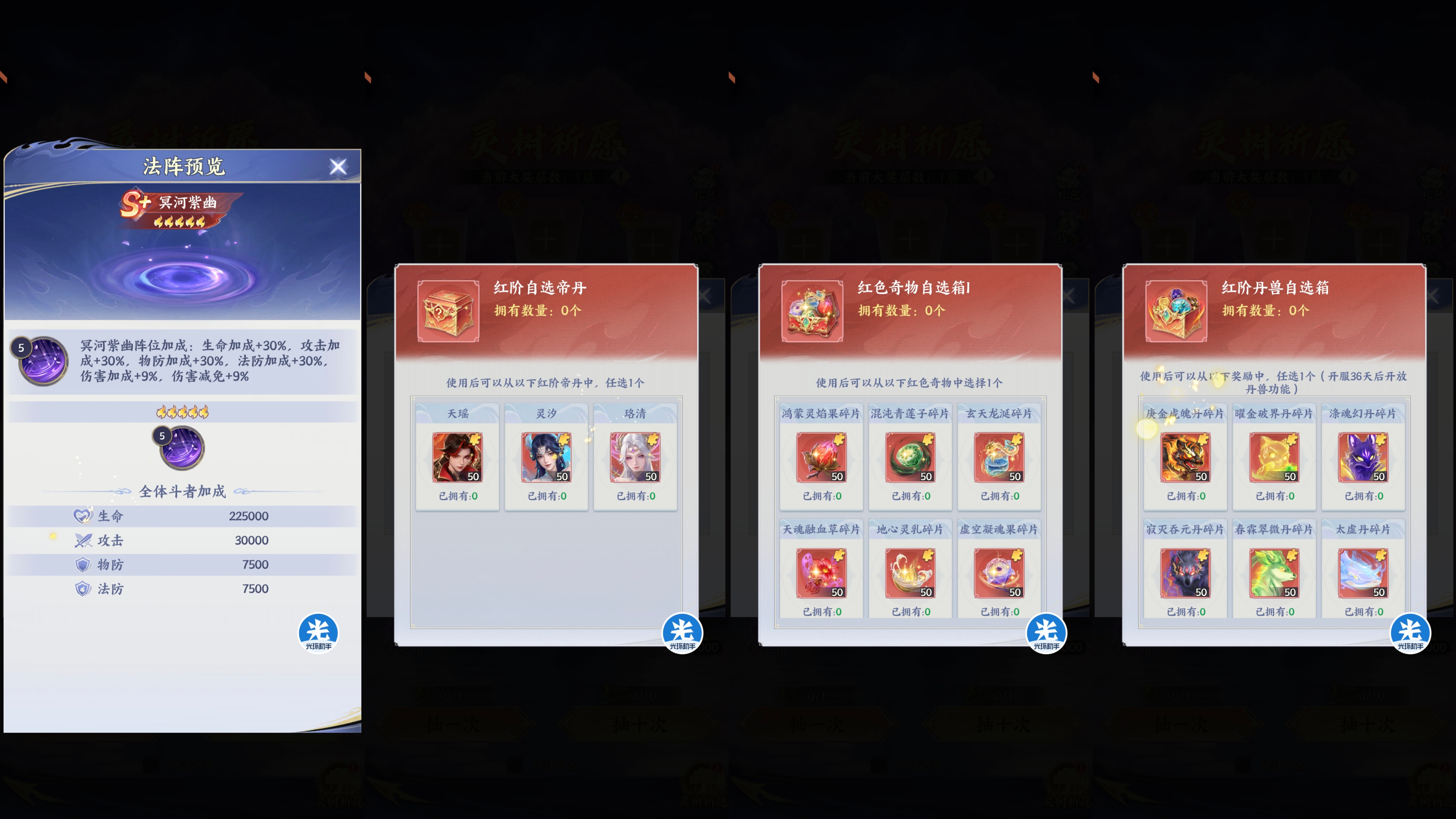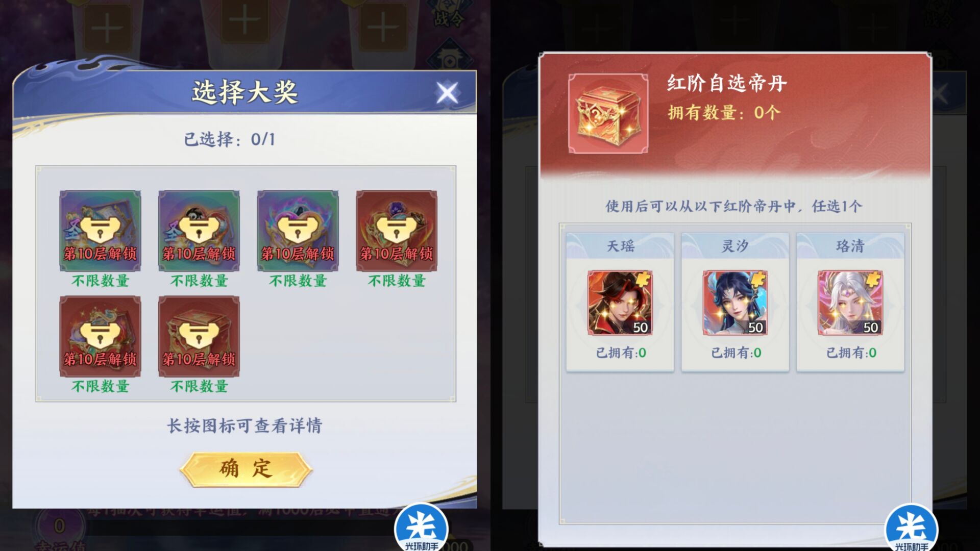 ②左边灯笼优先选择:帝丹=奇物>丹兽>圣灵>异火>斗技(其中帝丹、奇物、丹兽需要第10层解锁)