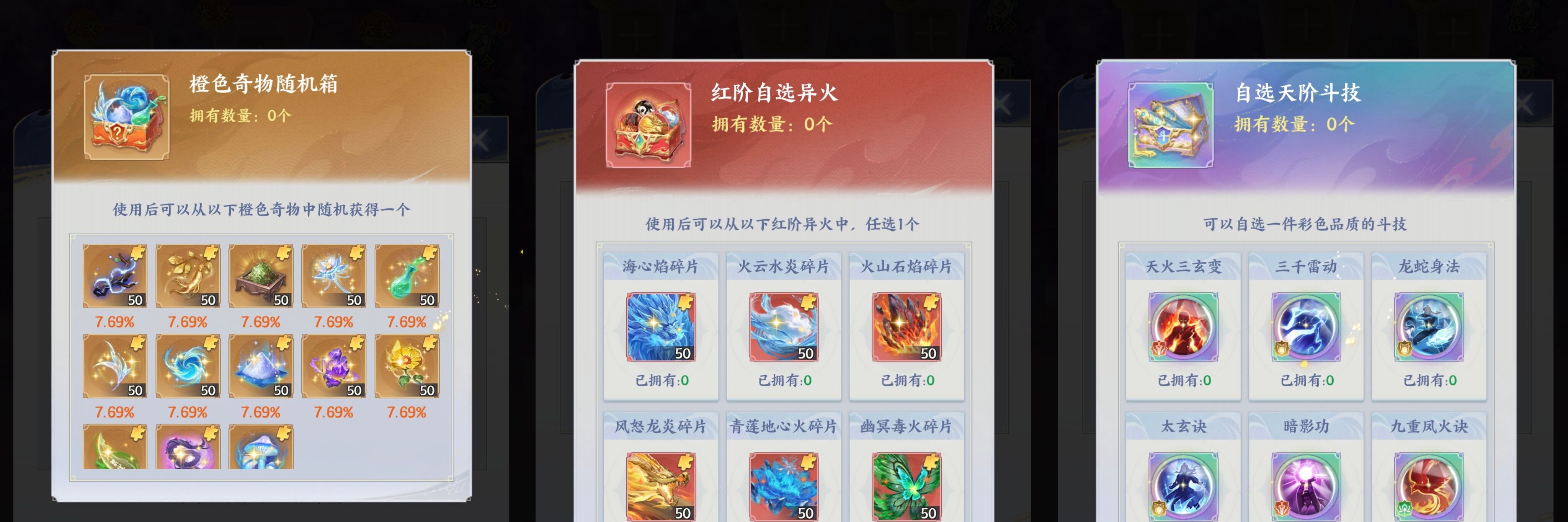 ③右边灯笼奖励:橙色奇物>异火>斗技(需要第5层解锁)。