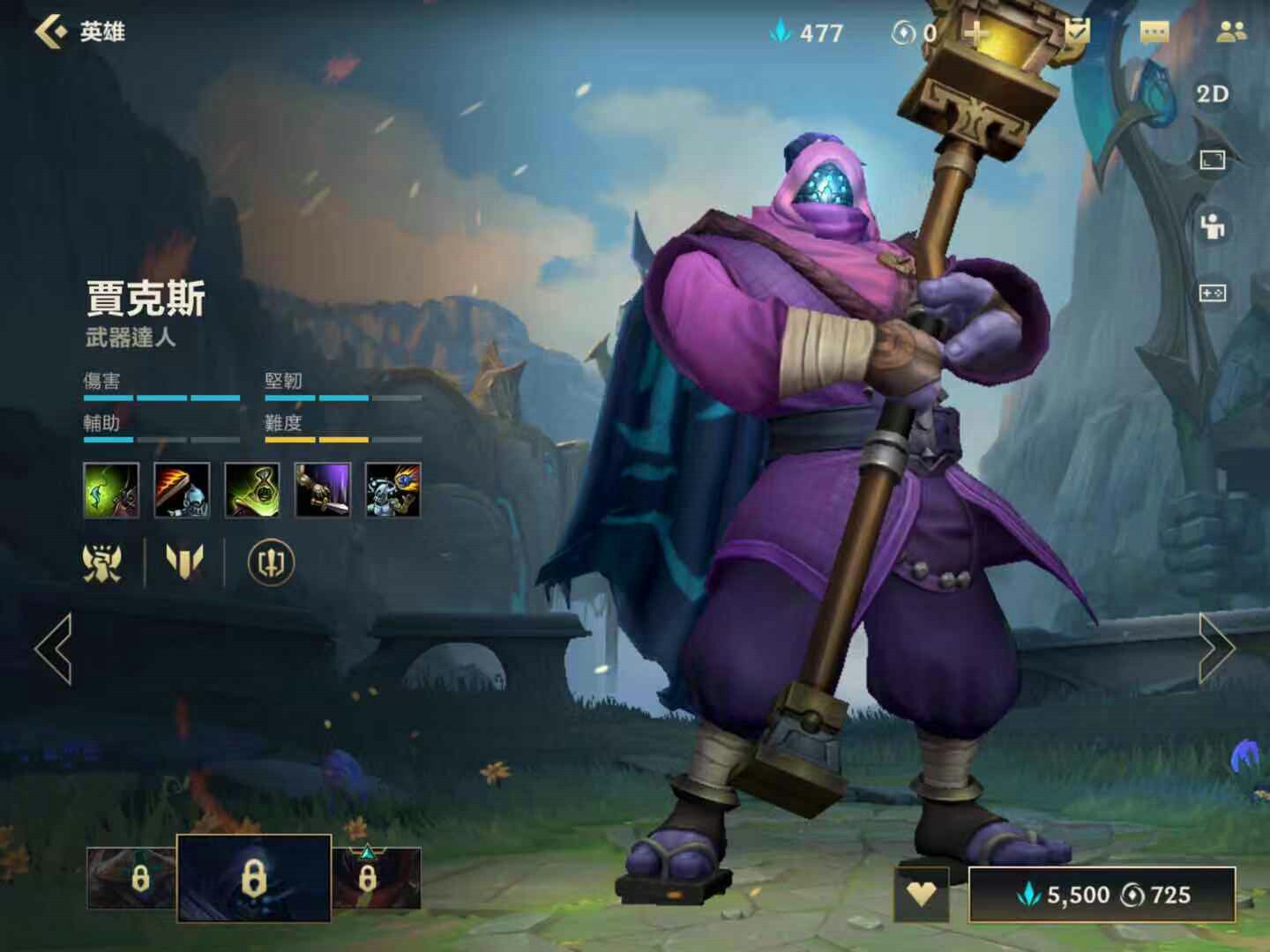打法方面,武器大师前期要弱于大部分上单英雄。因为武器大师本质上还是一个后期英雄。所以前期一定要合理控制好兵线,尽量不要被单杀,补好每一刀,不要让自己错过任何发育的机会。一直猥琐到三相之力做出来之后,就是你的发挥时间了。