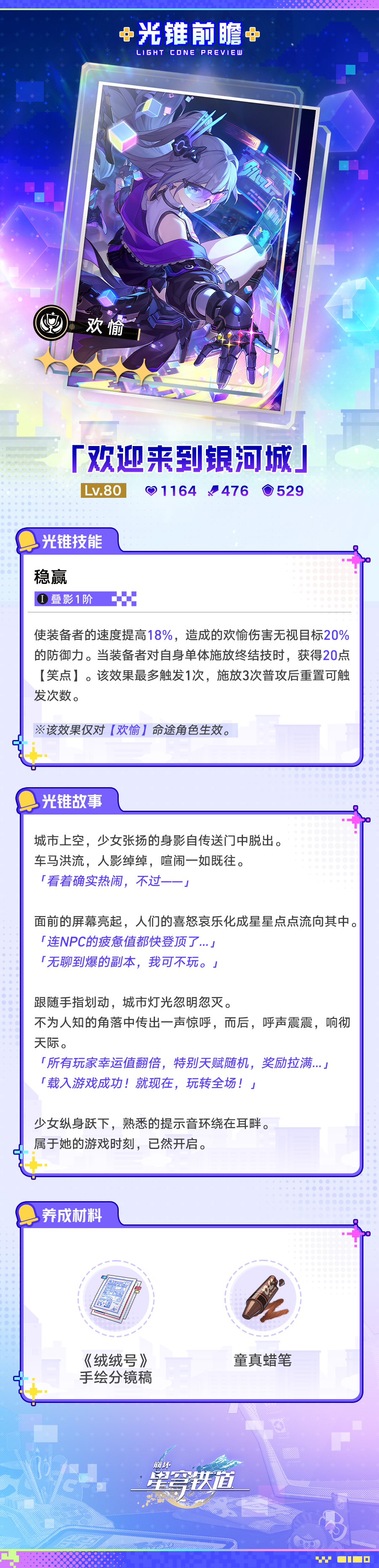 开拓者好呀~今天为大家带来角色「银狼LV.999(欢愉•虚数)」与光锥「欢迎来到银河城(欢愉)」的前瞻!