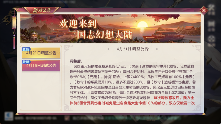 《测试服》SP王元姬三测测评(26.4)🍺长夜🍺发布于 04-21关注【三测调整】1、怒攻龙魂技新增放武勇类锁血效果;2、1火,限伤效果降低为只有首回合;3、小幅削弱3火光环数值,削弱了25%左右;4、5火,新增额外限伤内容,且双方仅触发1次,经典高打低。【省流】整体强度小削甚至是平调,5火新增防越战内容。感觉基本定稿了