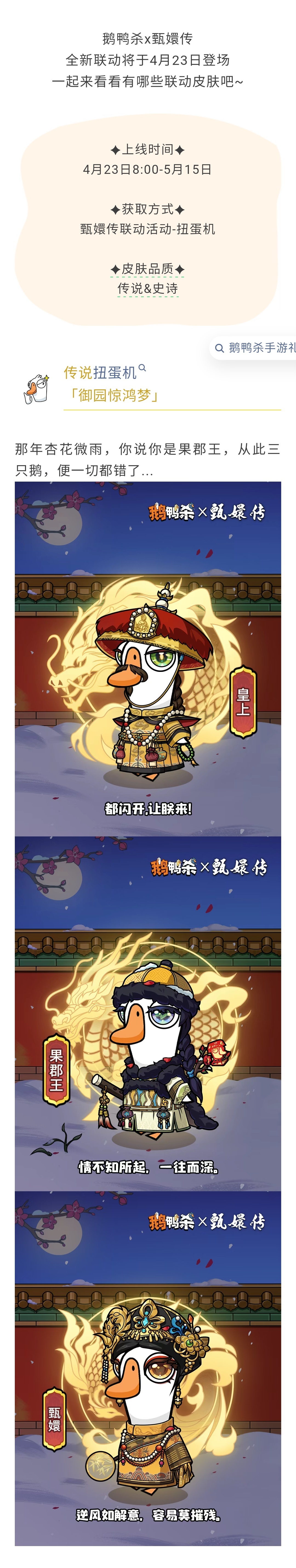 鹅鸭杀x甄嬛传 系列联动皮肤预告